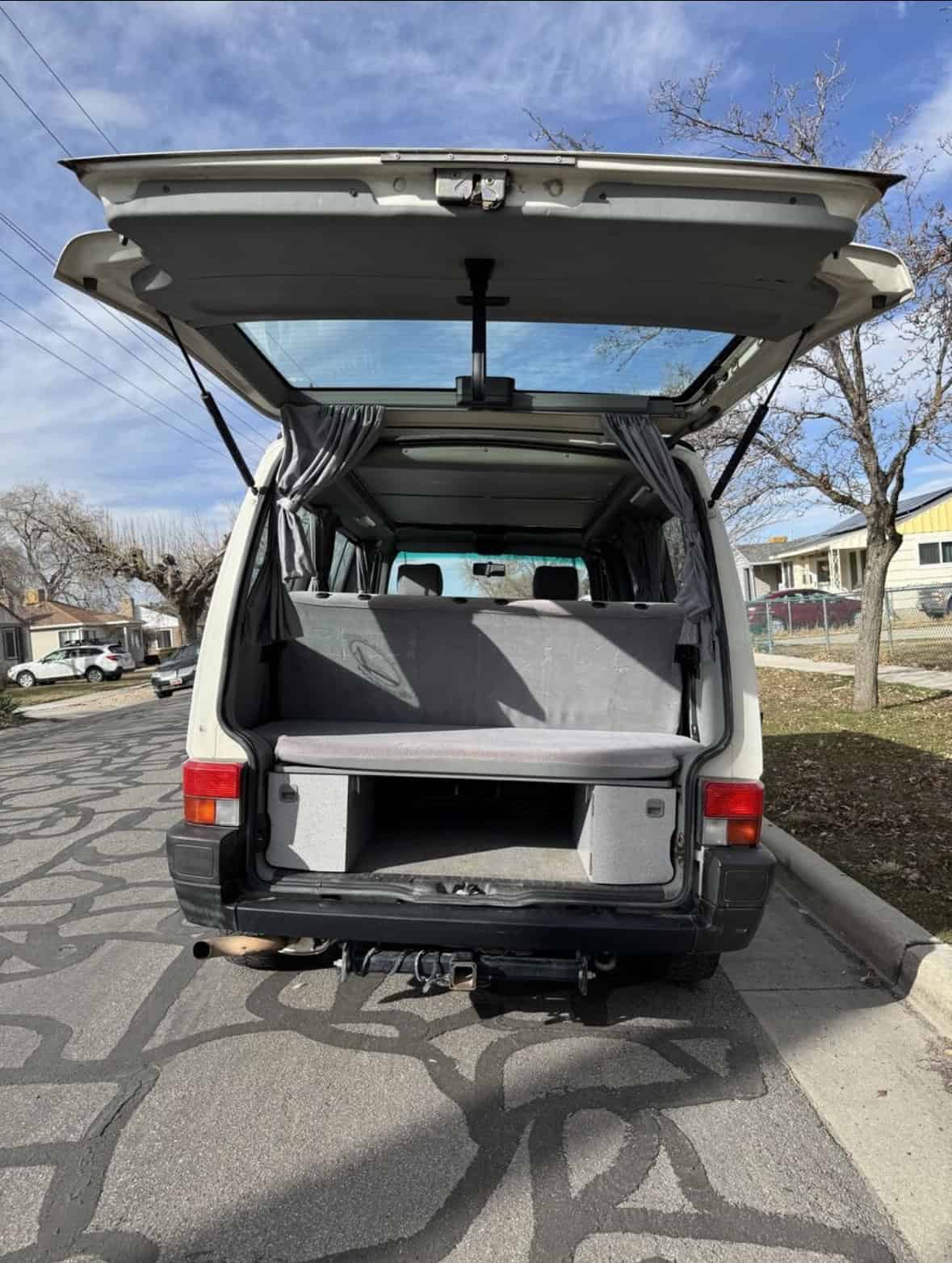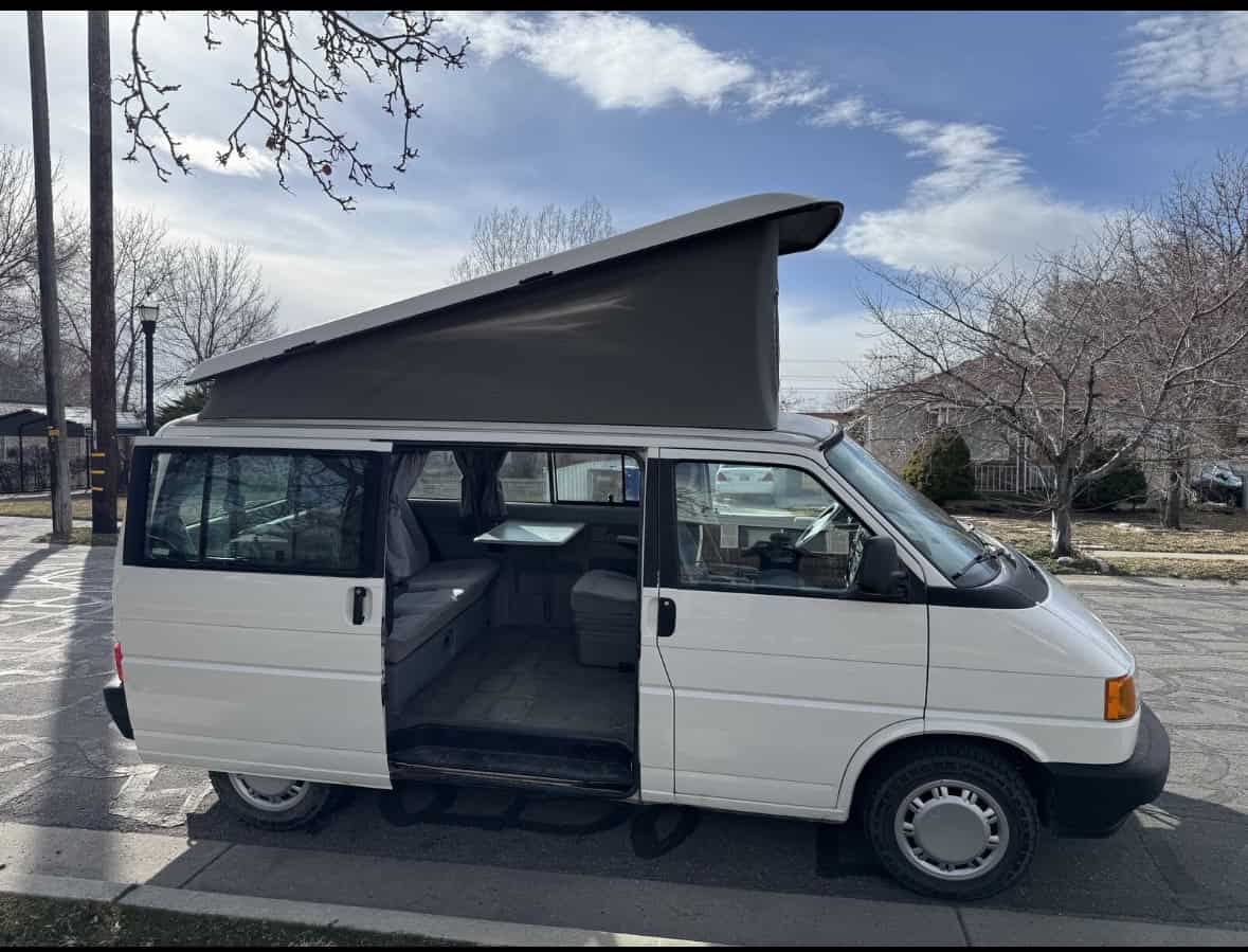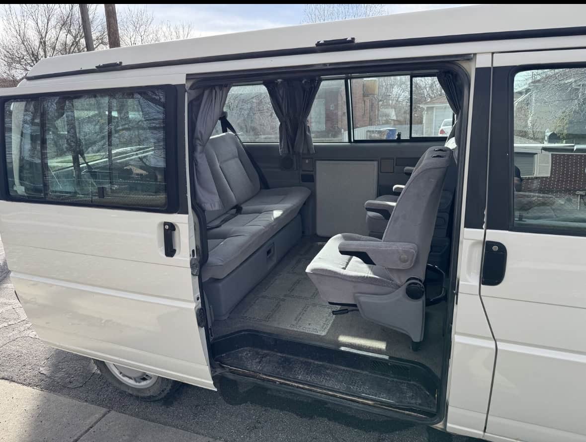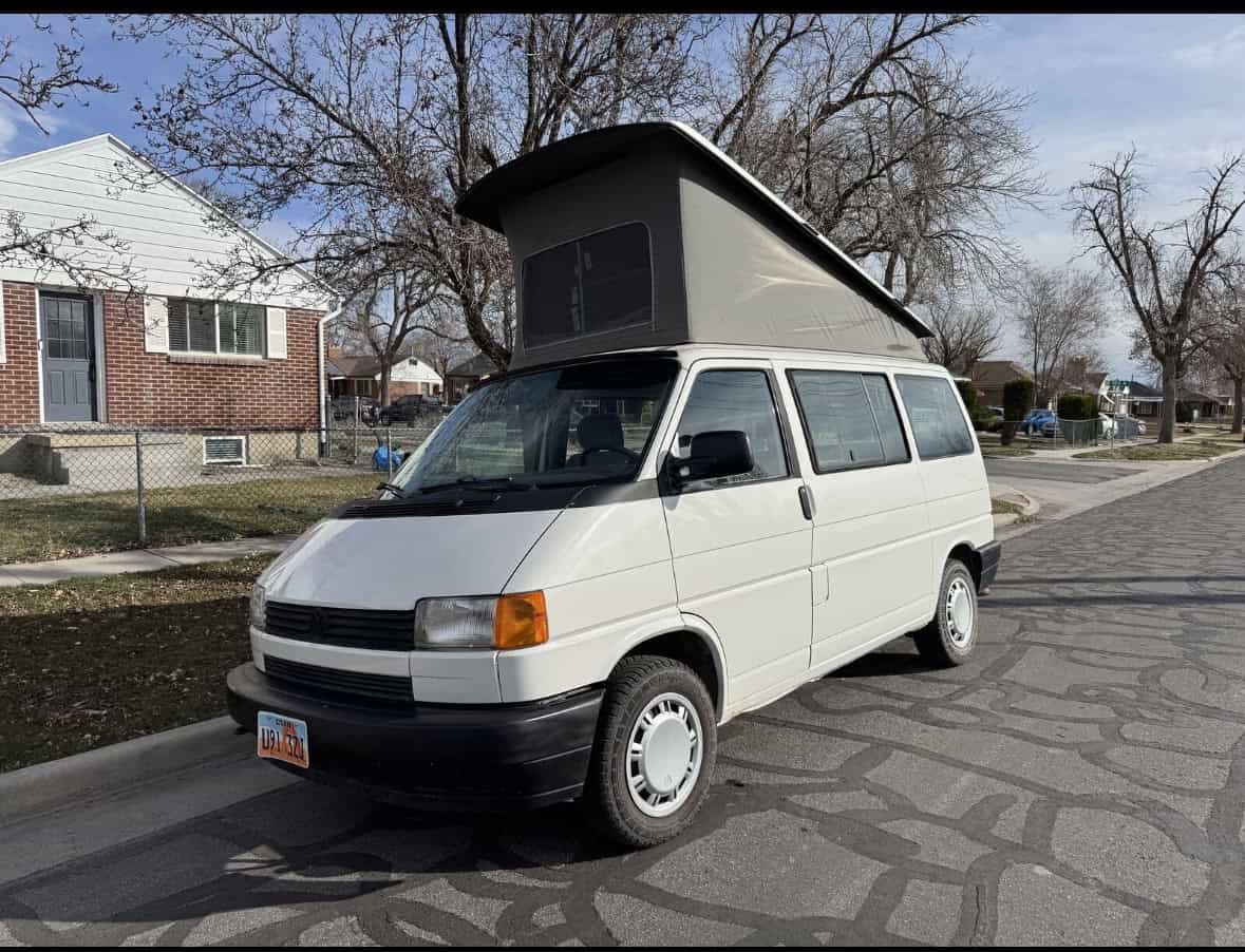 This 1993 Eurovan is a fantastic little camper van. I've owned it for three years and have absolutely loved it, but with a second kid on the way, we've outgrown it. It's a manual. We had a coolant leak fixed, as well as the rear axel rebuilt, replaced the exhaust manifold, and the instrument panel replaced at the start of the year. It runs very well. I recently drove it for a week while my daily driver was in the shop and it was great. This model does not have a kitchenette, but instead has a wider bench, which folds down into a bed that can sleep two. The pop-top tent sleeps two as well, so if you were really ambitious and/or popular, you could get four adults in the van (I'm not sure I would recommend that but it's certainly possible). Has A/C.