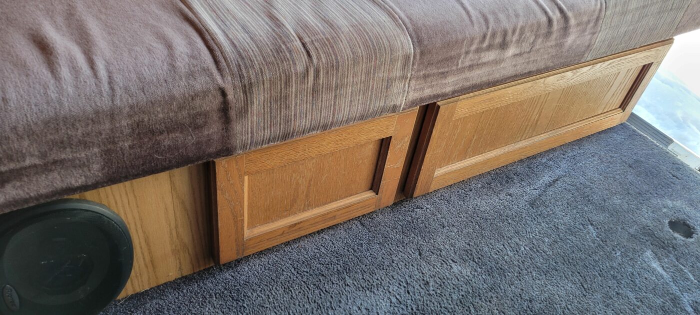 Cabinetry and Interior: The interior is well-finished with real wood cabinetry and furnishings, providing a comfortable living space.