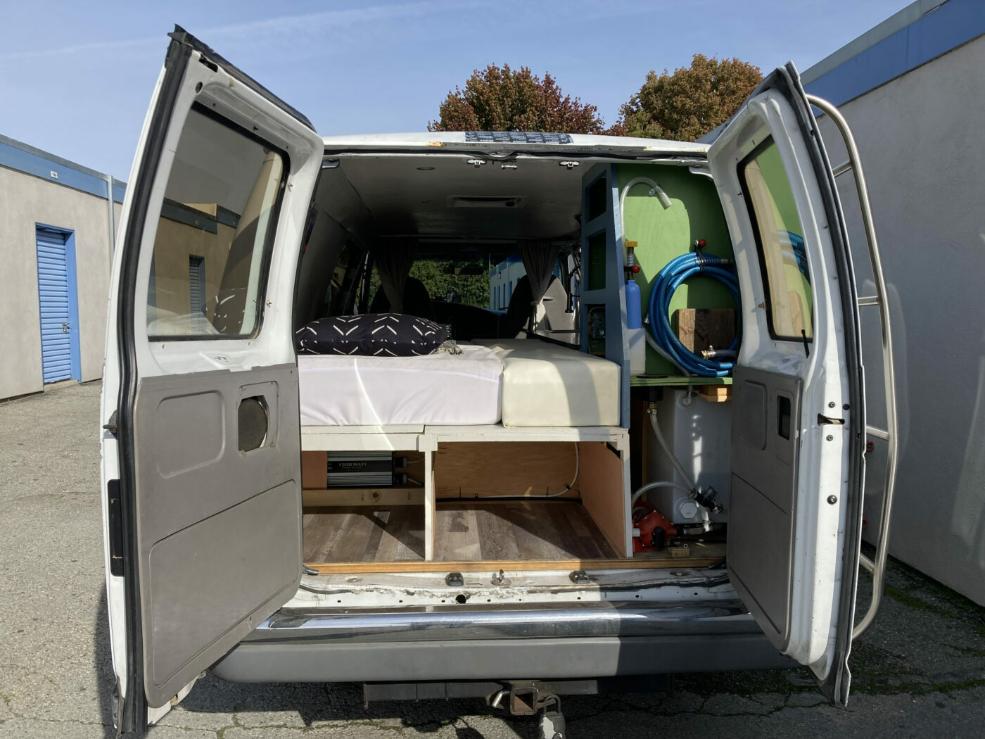 This Ford Econoline E350 Club wagon is equipped with a Triton V10 engine that is bulletproof and has LOTS of life left in it. The van is fully converted with: a bed, insulation, natural a/c, fridge, running water, solar panels, batteries, power inverter, lights, storage and heat. The electricity and water were installed by a professional engineer and electrician. This vehicle is equipped with everything you need to survive on the road.