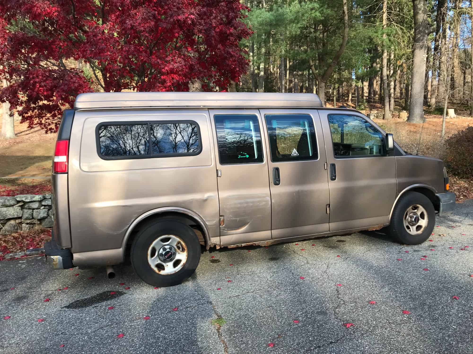 AWD Sportsmobile Conversion Camper Van—10 passenger, penthouse roof pop top (sleeps 2), 2 bench seats with under seat storage which convert to a large bed (sleeps 2-3), coat closet, microwave and TV cabinet with storage drawer, portable table, full privacy curtains, 110/220 electric hookup, Stowaway-2 hitch carrier, running condition. original owner. $4000 or best offer.