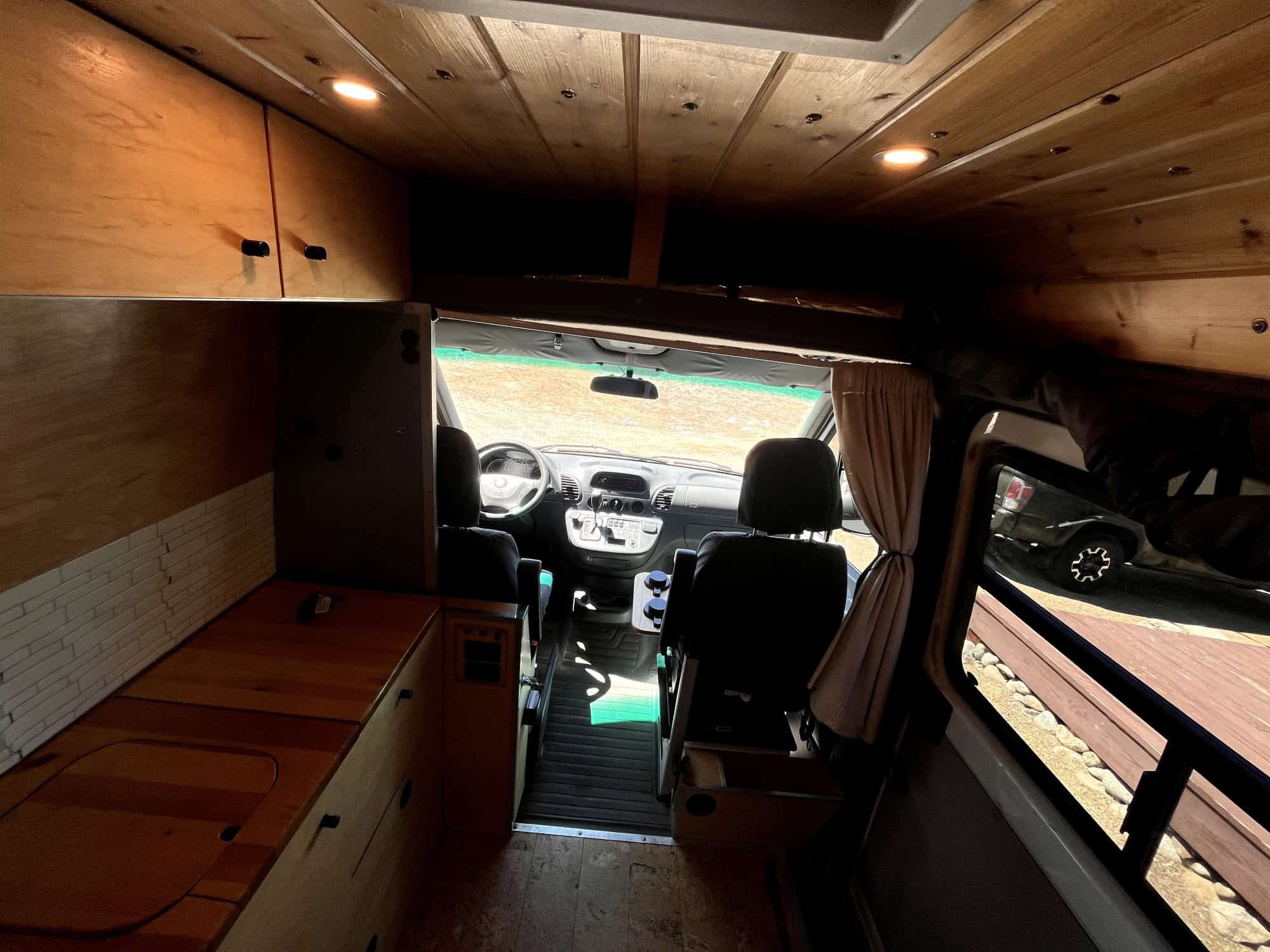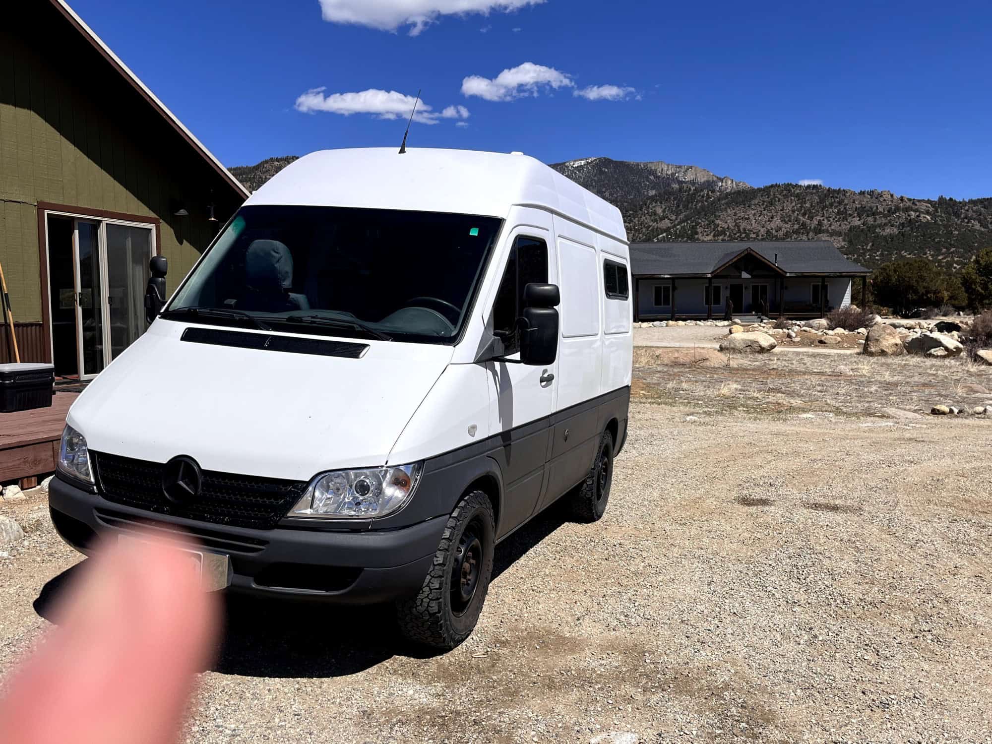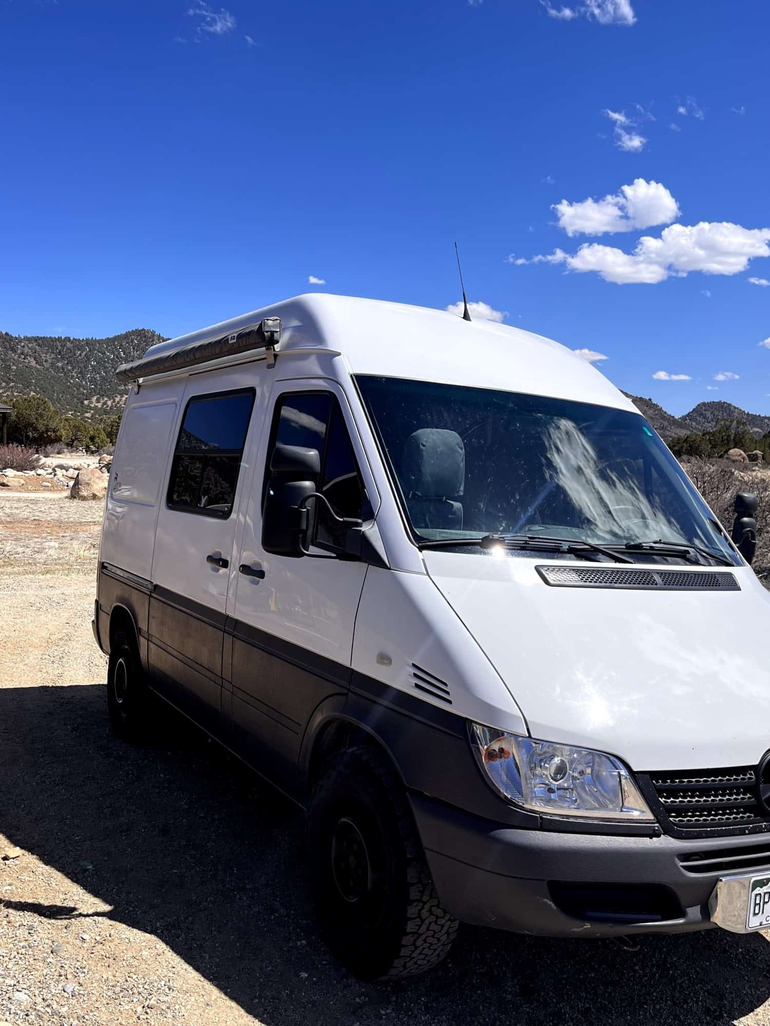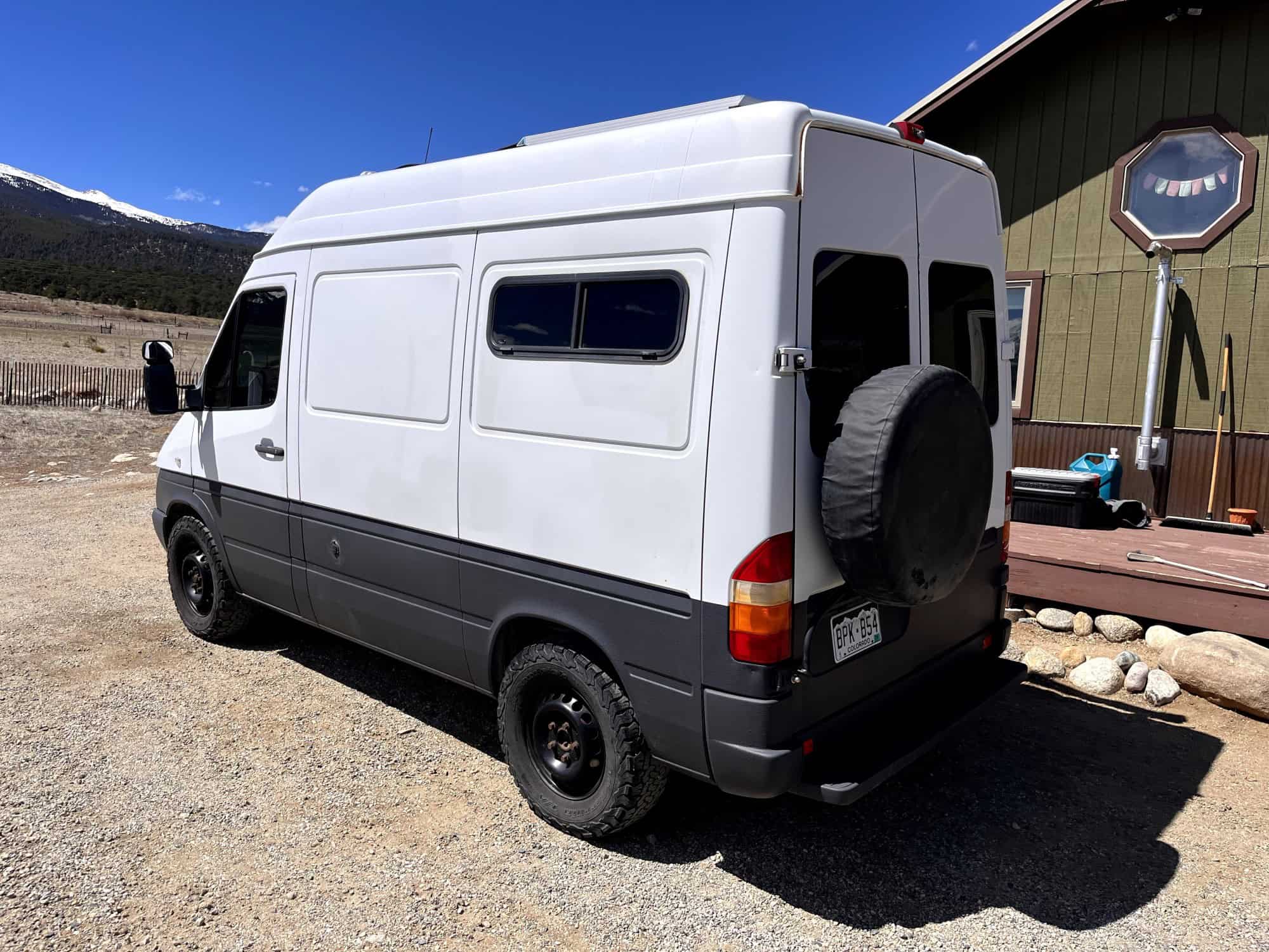 2006 Mercedes Sprinter 118” wheelbase, high roof (the 118″ wheelbase is hard to find, shortest wheelbase of the T1N models with a high roof)