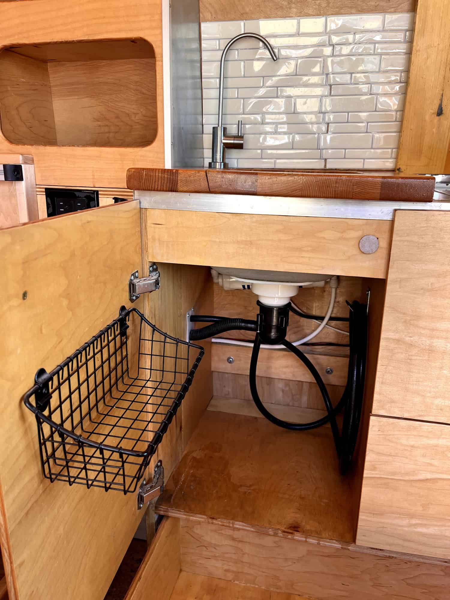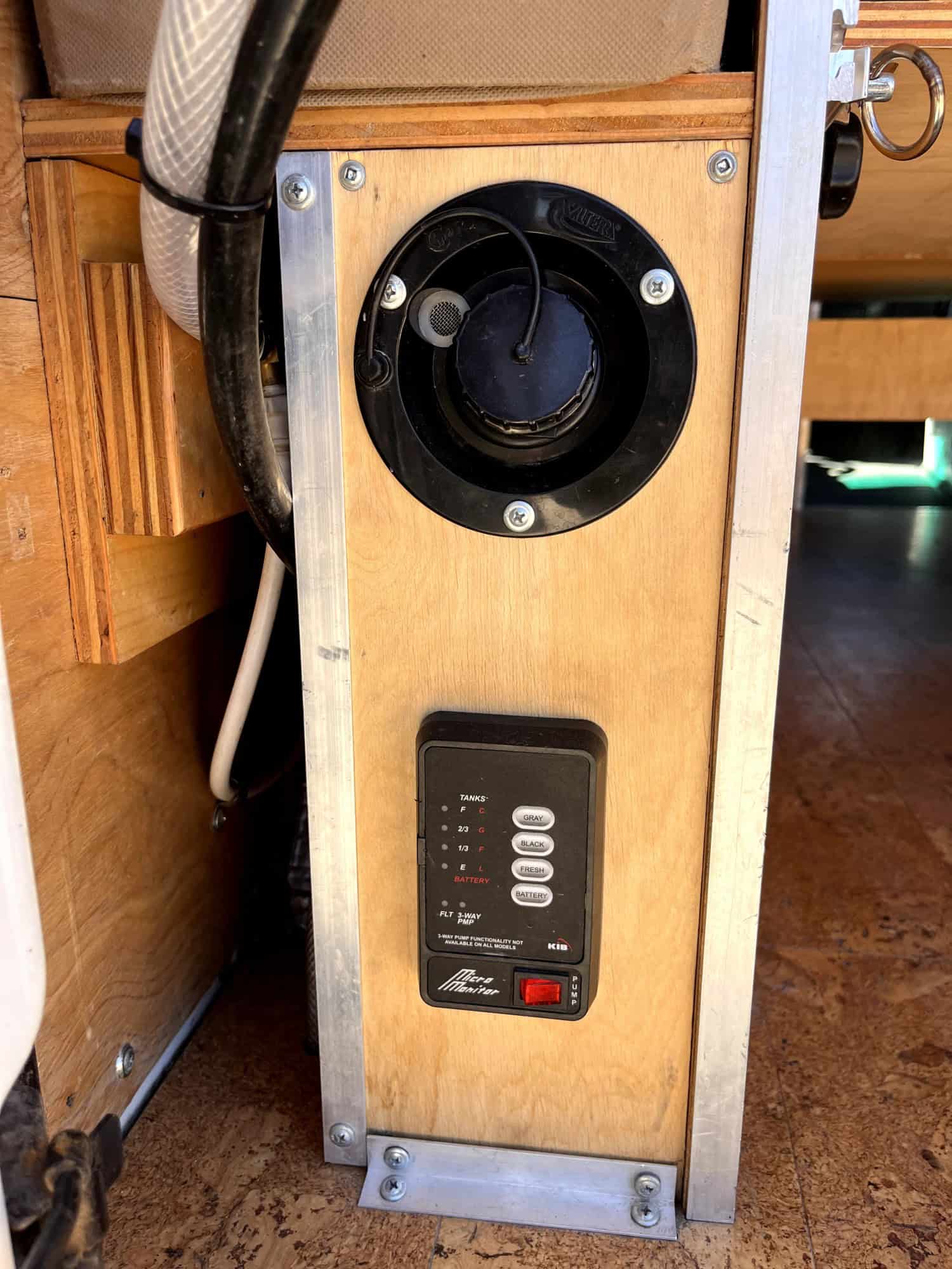-Water pump (switched) ***Water pump is currently broken, but for $100 you can buy a new one and replace it very easily for running sink water and to hook up the outside propane shower)