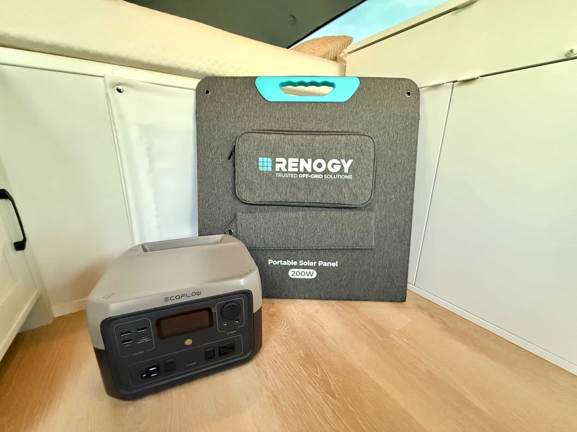 * 200w solar system paired to a EF EcoFlow River 2 Max 500 portable power station