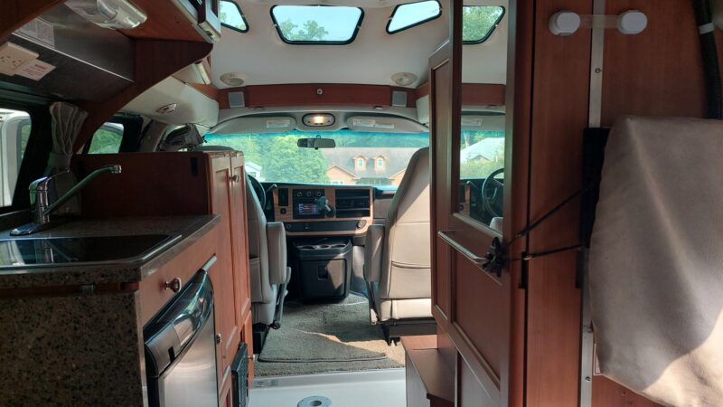 Inside, the Roadtrek 170 Versatile boasts a well-designed layout that maximizes space and functionality. The kitchen area is equipped with a stove, sink, and refrigerator, making it easy to prepare meals on the go. The bathroom includes a toilet and shower, ensuring that you can freshen up wherever you are. The sleeping area can comfortably accommodate two people, and the dinette can be converted into an additional bed if needed.