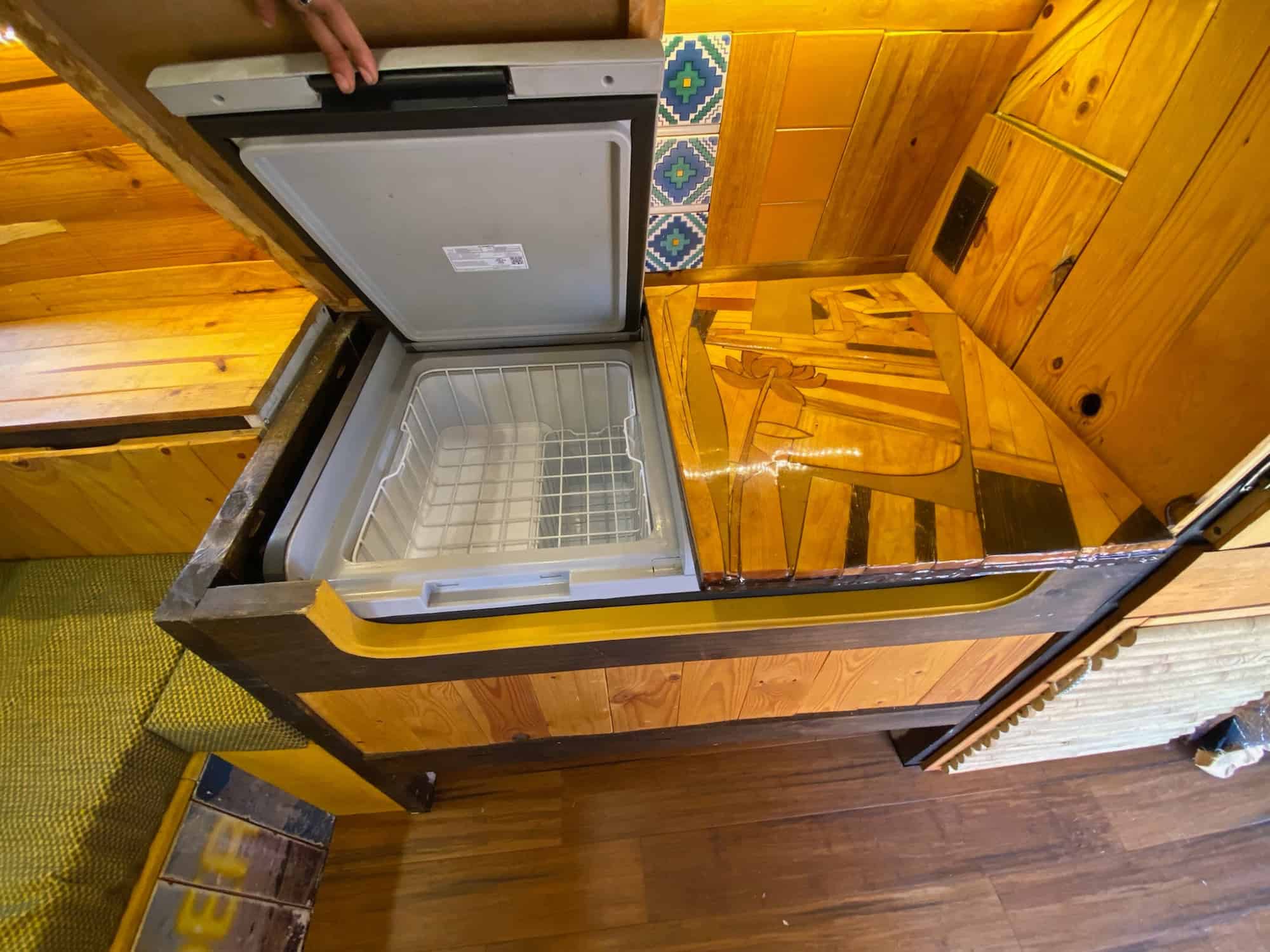 Custom wooden Trash box – removable, doubles as seat