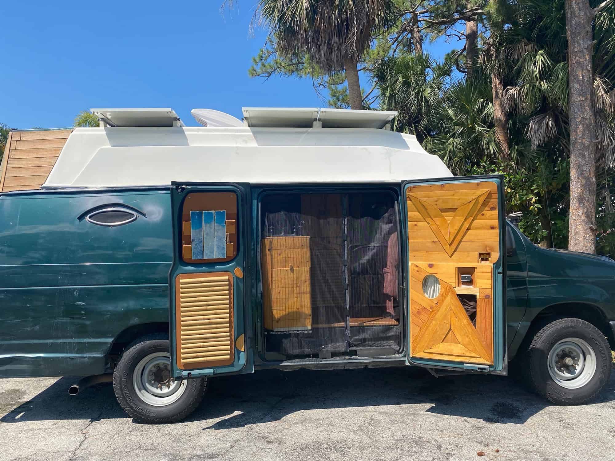 This is your dream van if you’re seeking to be inspired. If you’re an artist, creative type, or are looking to disappear into the wilderness, welcome to your new home! We built this van with love and customized it with a huge power bank, fridge/freezer, solar, running water, and tons of storage in order to maximize its off-grid capabilities. The interior is built from reclaimed wood, finished with natural oil, insulated with natural Havelock wool, and designed to feel like home. See below for details. We look forward to hearing from you!