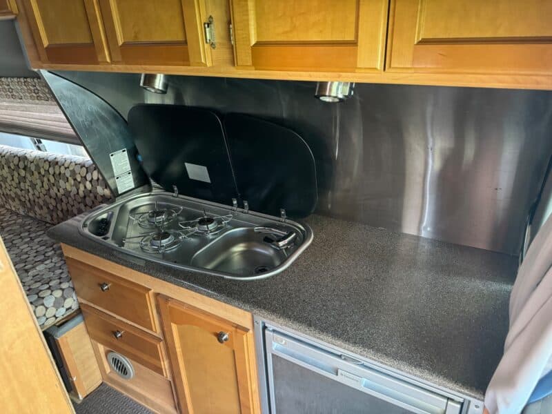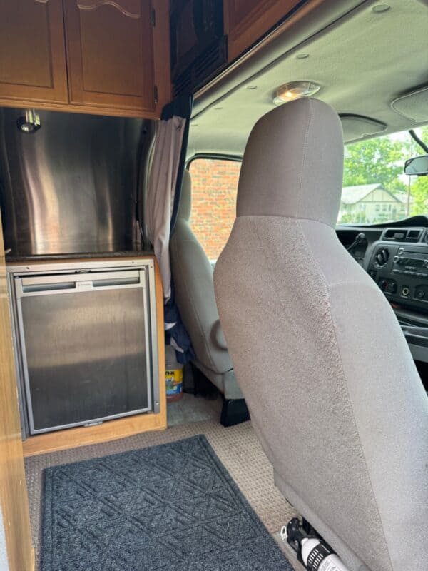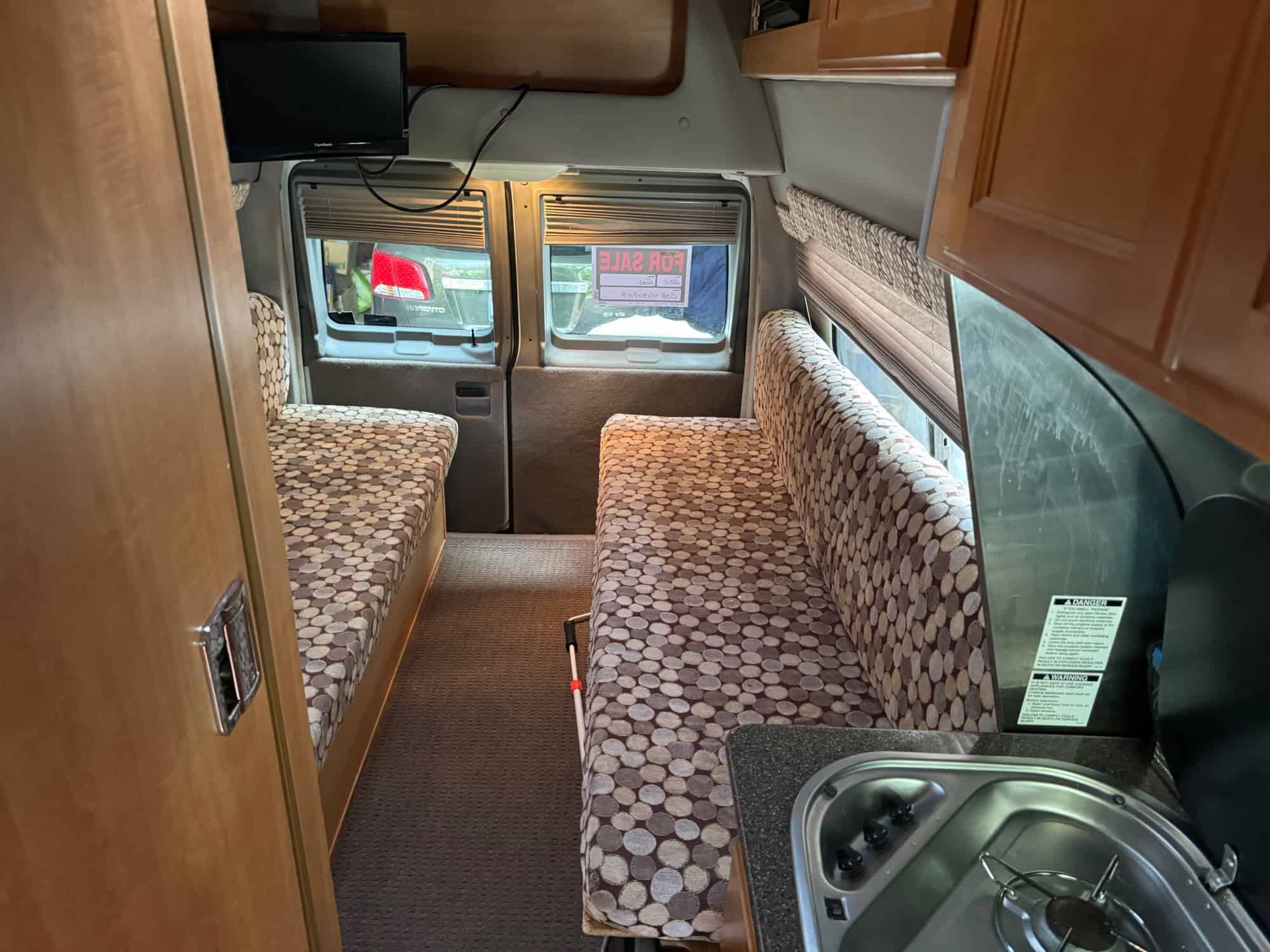 Bench seating in rear, converts to queen bed