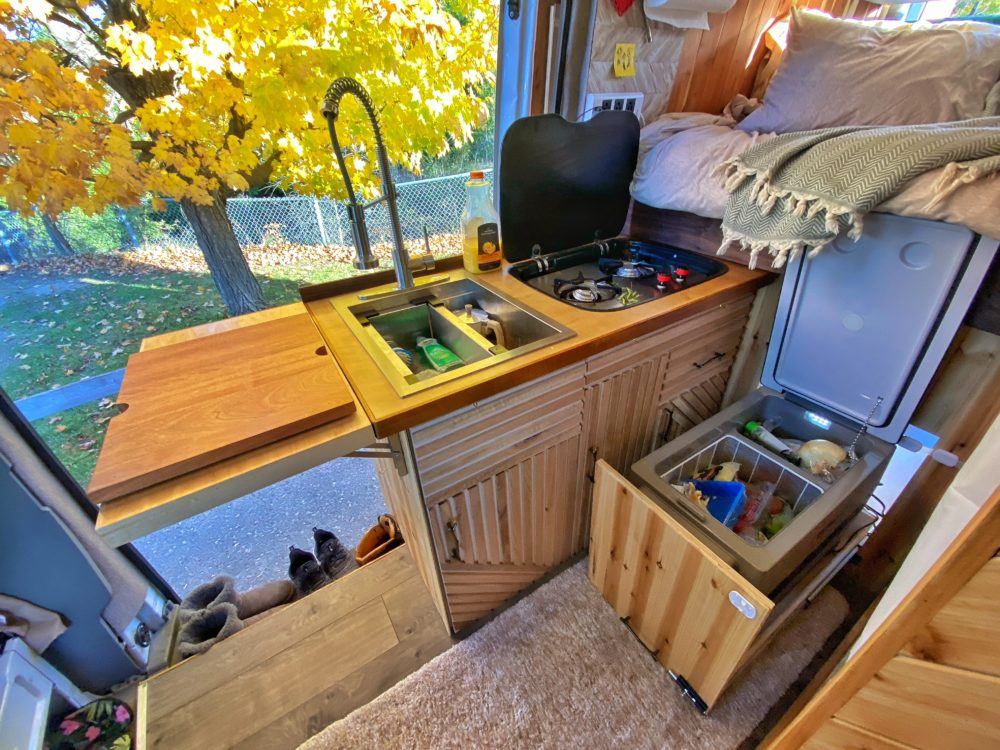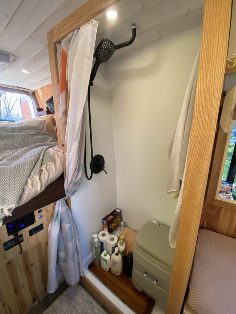• Indoor hot-water shower (it is seriously AMAZING to be able to shower inside the van).