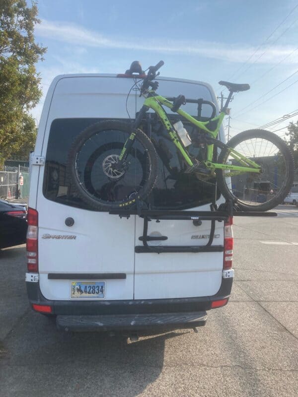 – Single door Thule double bike rack that converts into a vertical large size Yakima box ski rack
