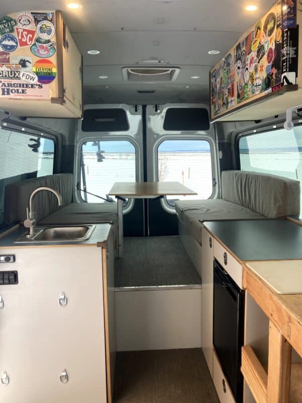 I enjoyed living in this van for two years, including two mostly ski bum winters in the Tetons. I’ll miss it…it helped me make the transition from living in Seattle to living in Teton Valley. However, I ended up buying a house, so sadly I need to sell the van. It needs a little love, but, with the amazingly high mileage that diesel Mercedes get, this really well designed build could offer years of enjoyment as a camper or live-in van.