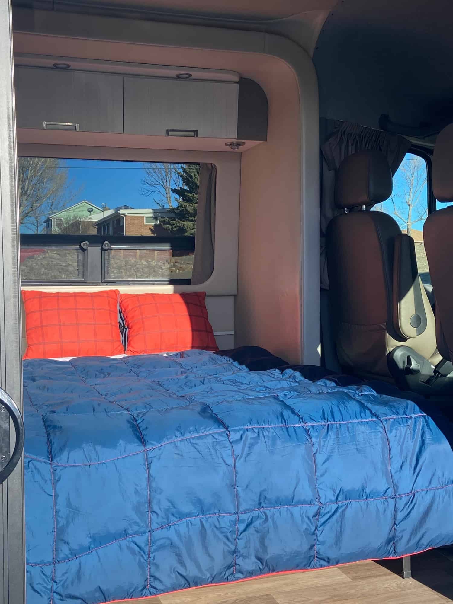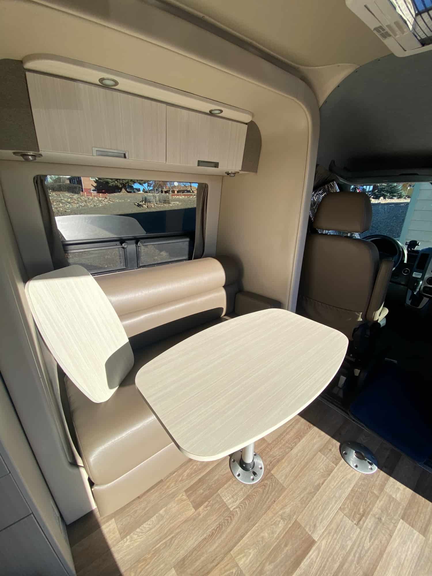 This Mercedes Sprinter has a full bath with a separate shower and towel bathroom sink and vanity, a couch that converts to a full-sized bed when the slide is out, a 2 burner propane cooktop with deep kitchen sink for ease of doing dishes, tons of storage, new tires, new hot water heater, a propane generator, electric AC, propane heater, electric awning, and newer electric retractable step. This dully comes equipped with a trailer hitch and full-sized spare tire.