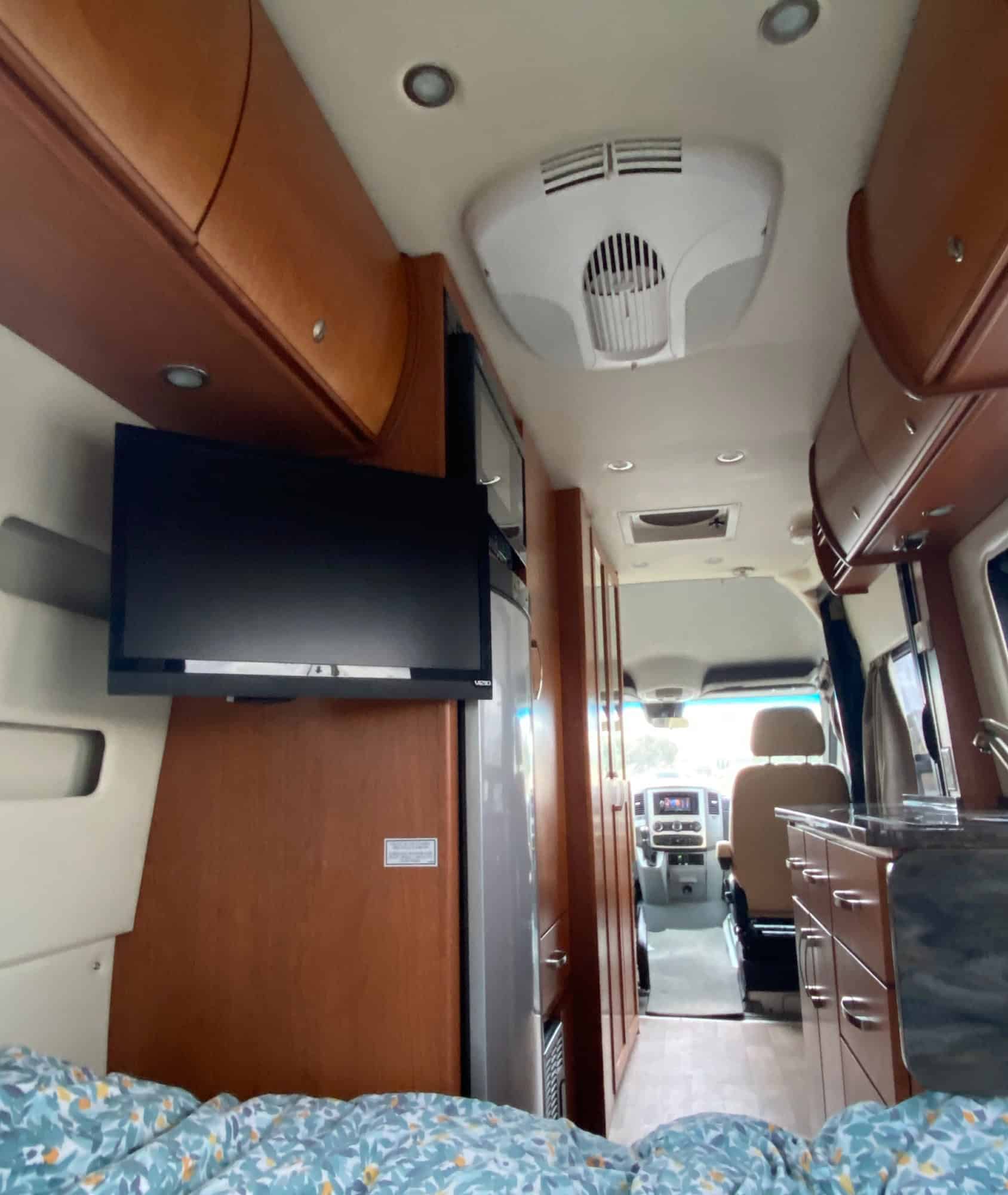 Vizio E241-A1 TV on swivel arm for viewing from the bed or the captain’s chairs