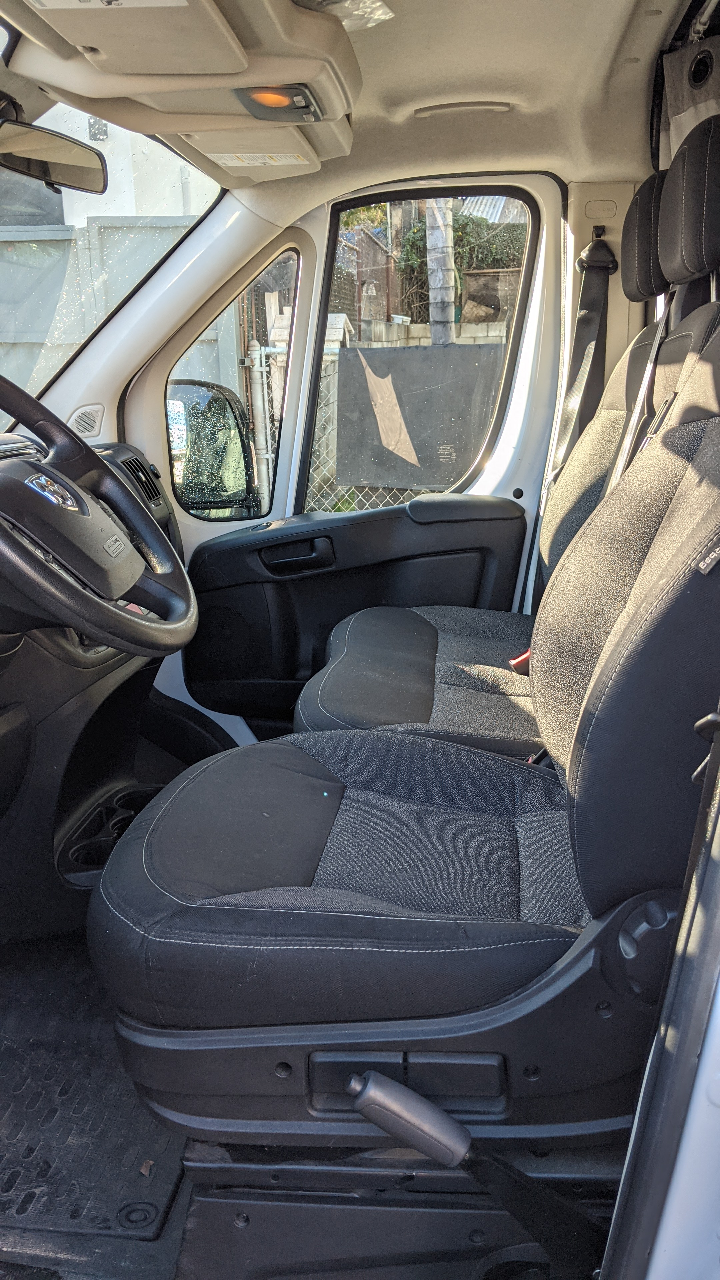 We have decided it is time to sell François. It is a Wayfarer van conversion (wayfarervans.com – converted in 2020) in a 2015 Ram Promaster 2500 Eco Diesel that has all of the comforts you need for amazing trips. It has a full-size bed and three seatbelts in the front. Sleeps two comfortably, but you could sleep three with someone under the bed with a sleeping pad—like a bunk bed. Excellent fuel efficiency (EcoDiesel), which means you’ll get, on average, about 24 mpg. Easy to drive and park.
