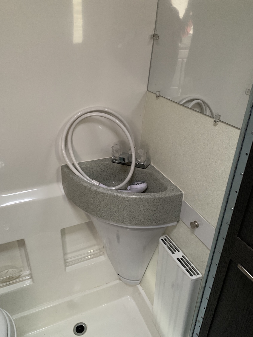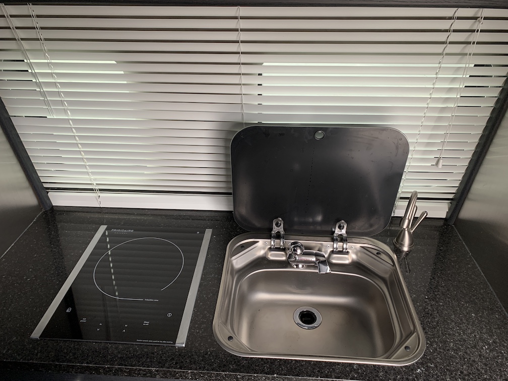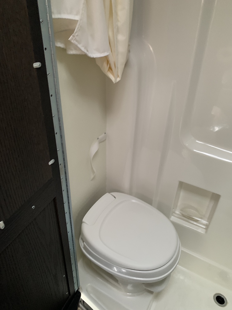 Integrated diesel generator – 2 large lithium batteries – dual back wheels and stabilizer – tow package – power awning – air conditioner – smart fan – bathroom – swivel seats – 2 tables – double insulated blinds – 7.0 cu ft refrigerator – oven/microwave combo – induction stove – hot pot – Alde heater – inside & outside showers – outside 110 outlet – back & side removable screens – many LED lights – lots of storage – well insulated – King bed.