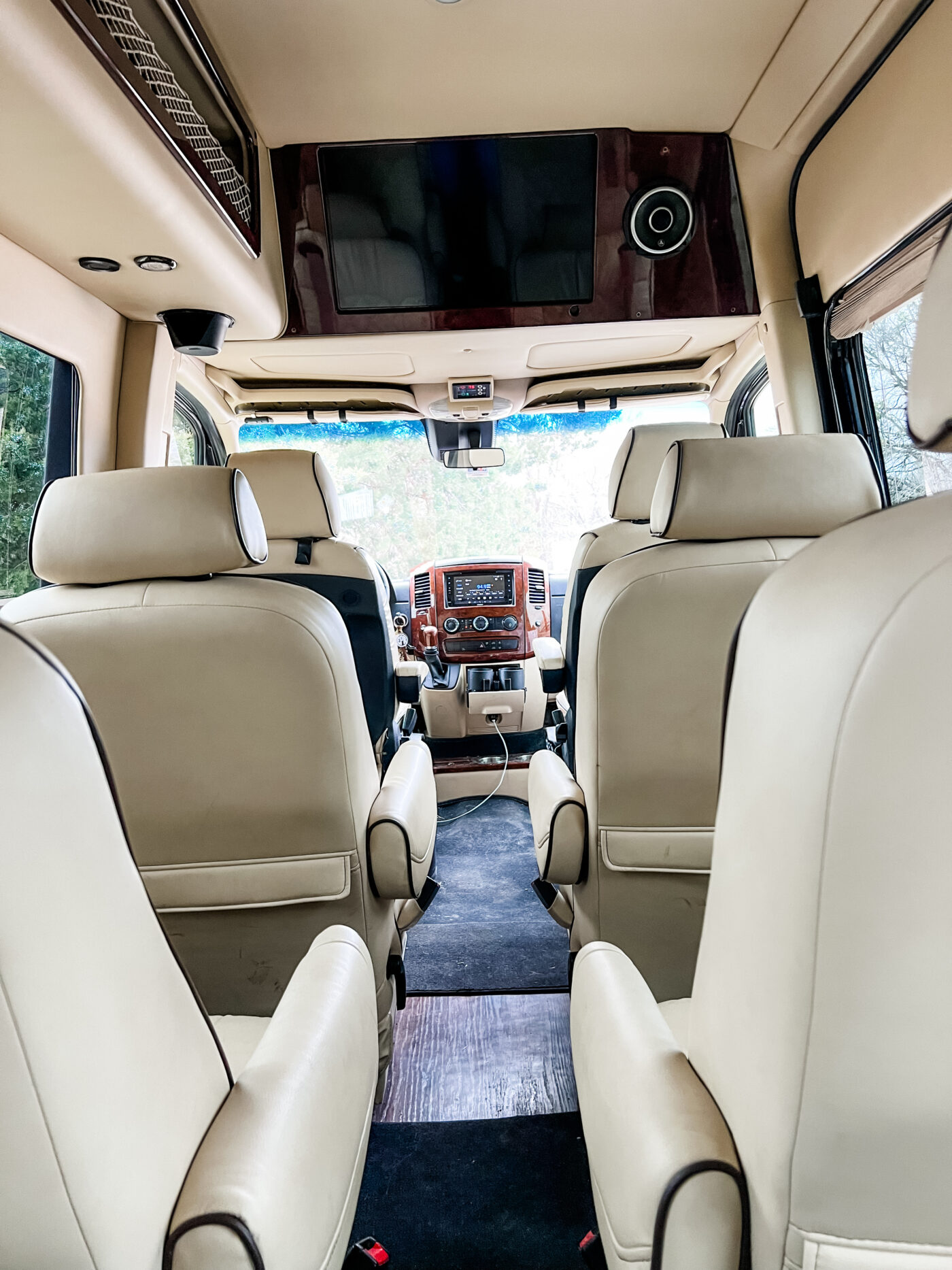 Four wheel drive van with upfitting done by Midwest Automotive. Comfortably seats up to 9 people. Leather upholstery throughout, massage front seats, and built in TV and DVD player make this the perfect vehicle for travel.