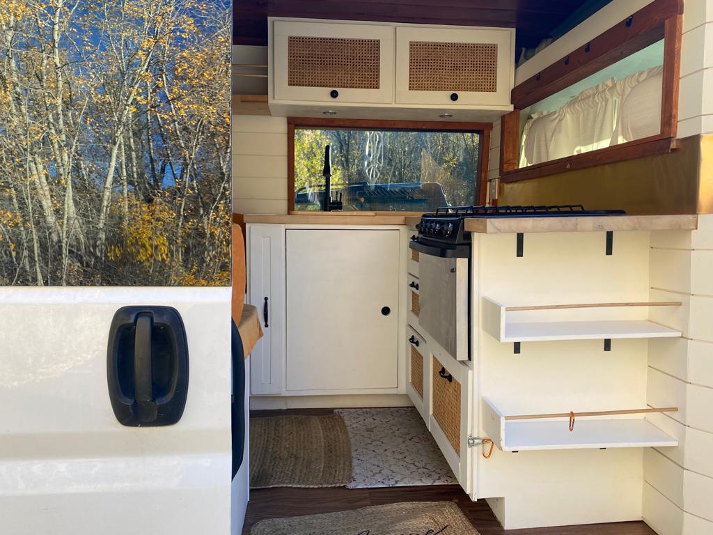 She is also ideal for supporting life off grid for extended periods of time. So if you’re looking for an alternative housing option OR the ultimate off grid camper van, you’ve found her!