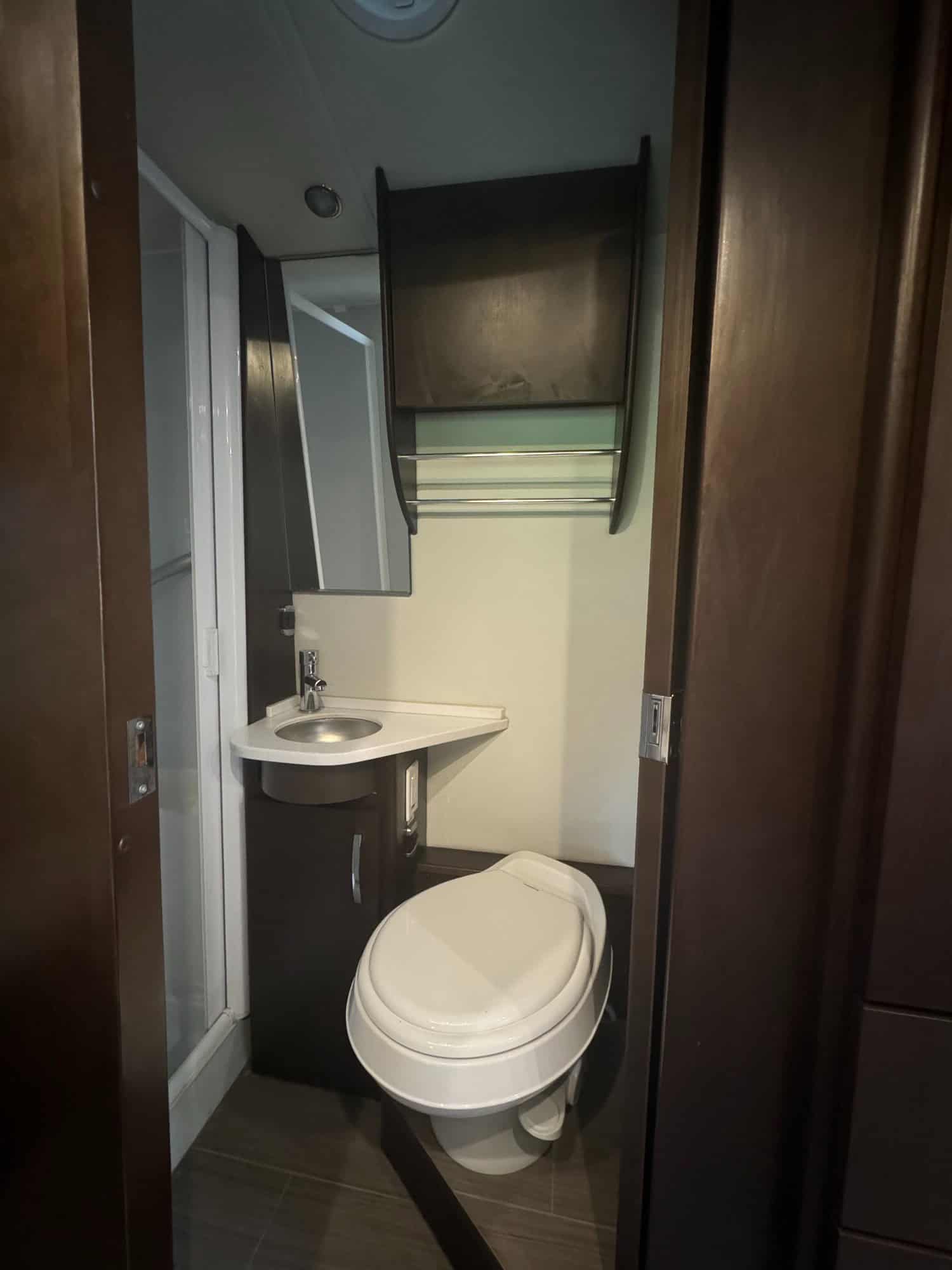 Toilet, Macerator sewage pump, 2-6V House Batteries, 4 rear tires.