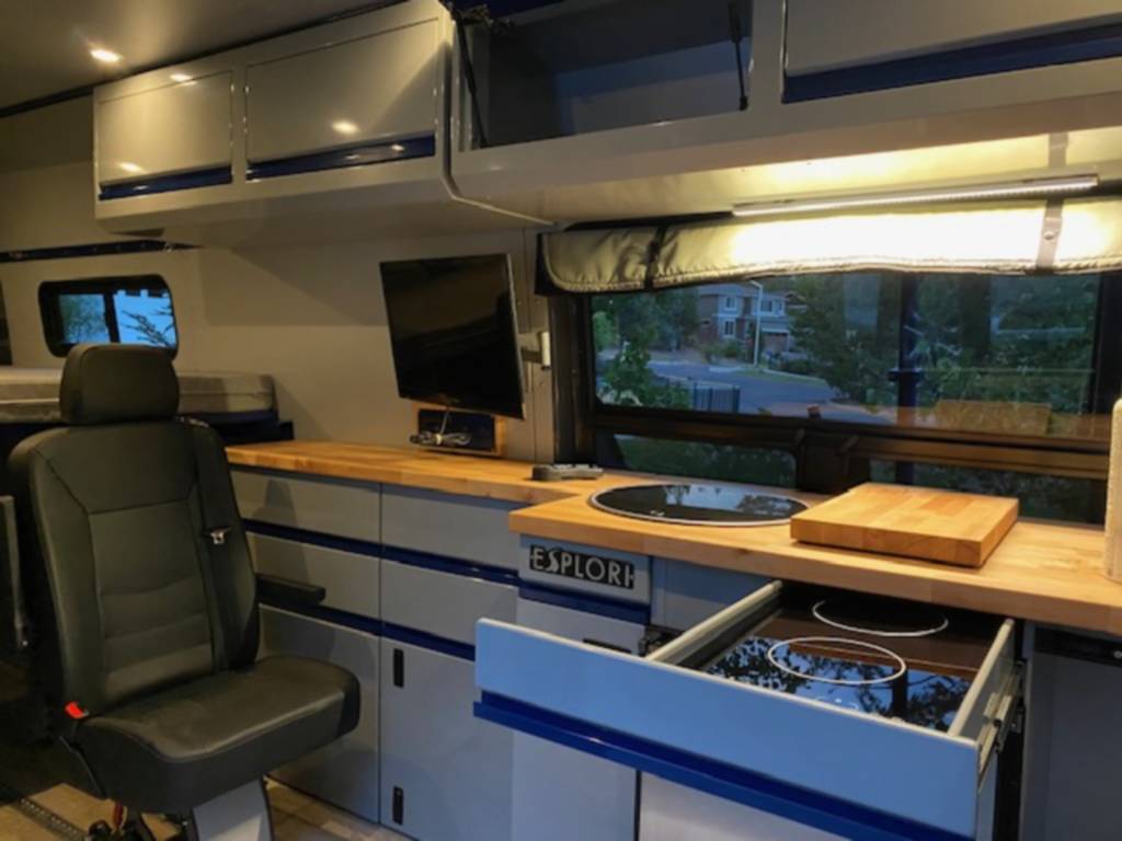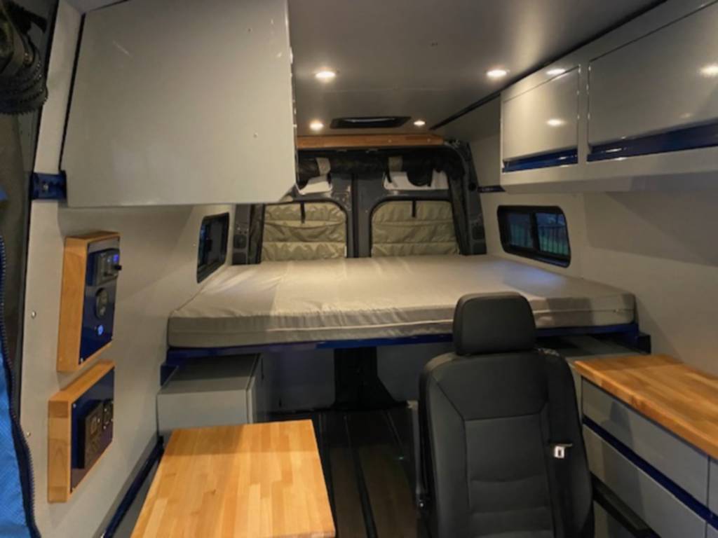 But that’s not all– with the Sprinter’s impressive 180 watts of solar power and 600 amps of energy, you’ll never have to fear running out of juice during your travels. And with features such as an onboard air compressor, 52-gallon diesel tank, backwoods front bumper with winch, Baha prolights, instant hot water, fridge, microwave, toaster, and Dish TV, you’re truly in for a deluxe ride.