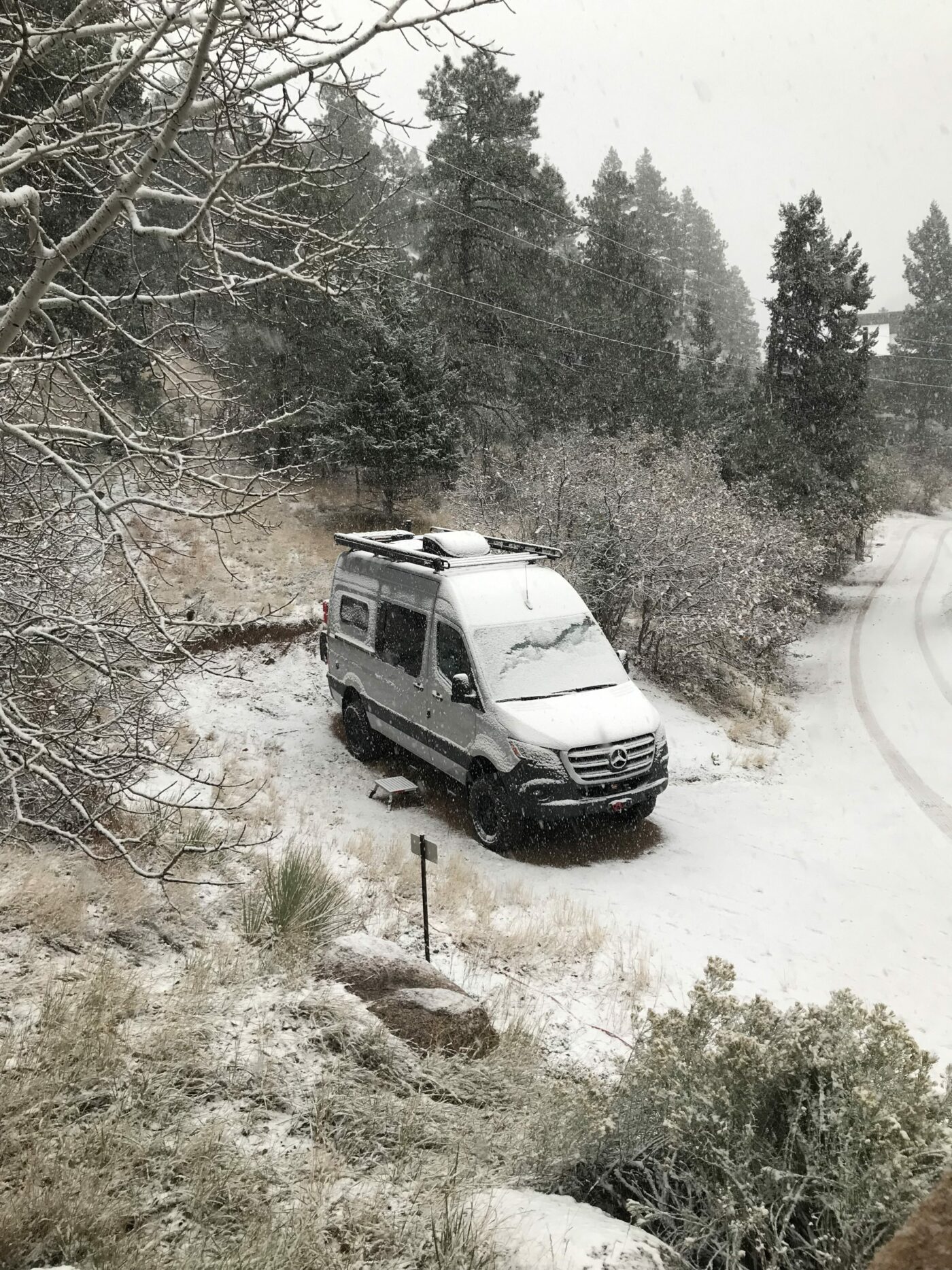 144” wheelbase allows for this van to be very agile in tight spots and is needed for an off road vehicle.
