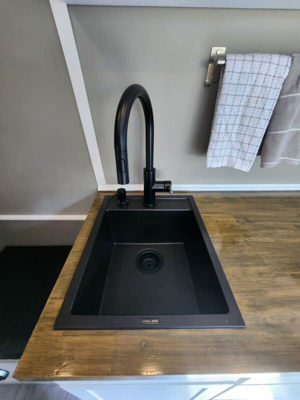 Drop in Black single bay deep sink with extendable sprayer/faucet