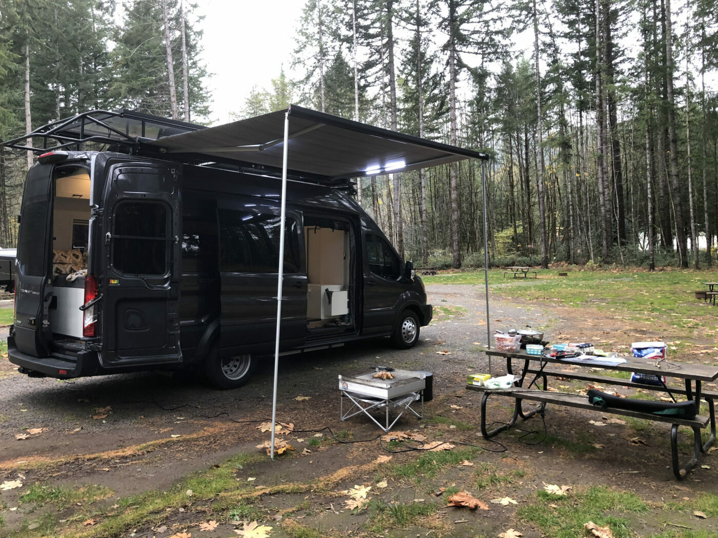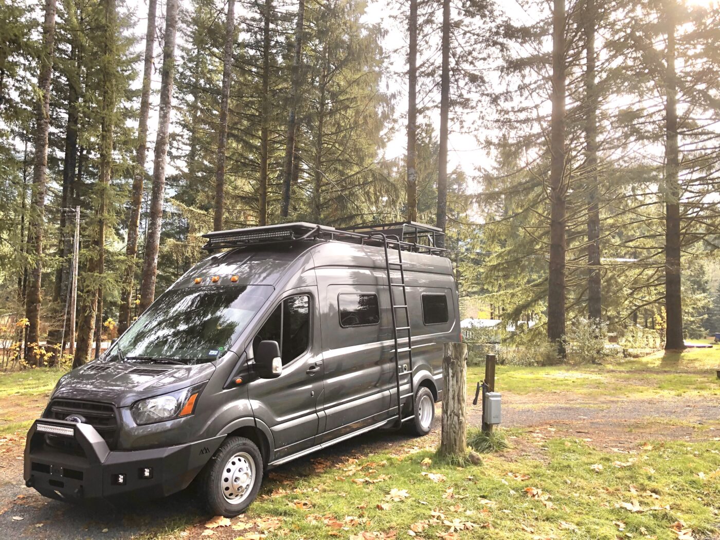 We custom ordered our van direct from the Ford dealership brand new with all of the options we wanted and empty in the back in 2020 so our custom builder didn’t have to rip anything out before starting. Then drove it to our builder at the end of 2020 in Vancouver, Washington. Because of the shortage of supplies during the pandemic, our build was finished and picked up November 2021 which also explains the super low mileage.