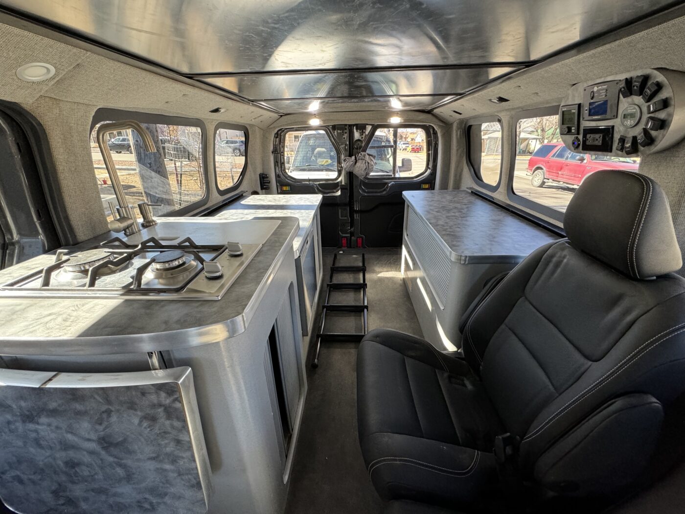 ModVans Model CV1 Modern, modular design uses strong, lightweight materials Safe, comfortable leather seating for 3 2nd Row yPassengers with Camp Mode and Transit Mode Sleeps 4 adults Strong, lightweight, fully removable conversion 3 Cubic Foot high efficiency, compressor based refrigerator Extra Large 2 Burner Propane Stove Deep Molded Sink 1,500 Watt Electric Heater 14,000 BTU Externally Mounted Propane furnace LED Lighting System 2,000 Watt (6,000 Peak) Pure Sine Wave Inverter / chassis generator Outdoor Shower Spaceframe chassis for superior drivability Electric Popup Top Roof Rack Passenger Seat Swivel Dedicated House Battery System 10 gallon Propane System 10 Gallon Fresh Water Systems 4G/LTE Cell Phone Signal Booster 10,000 BTU Rooftop A/C Exterior Aluminum Ladder 200Ah High Capacity Battery 300 Watt Solar Charging System Set up for composting toilet (toilet not included)