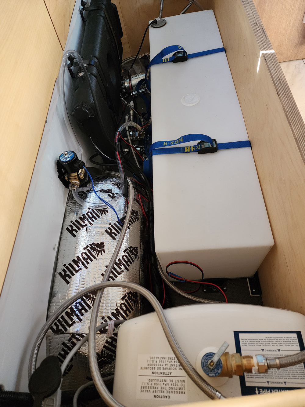 • 35 gal freshwater (up to week off-grid)