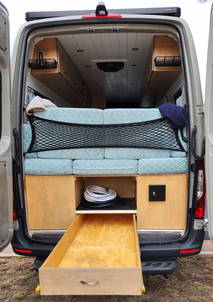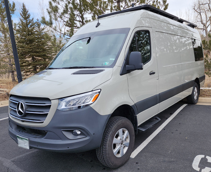 2020 Mercedes 2500 Sprinter 170 fully self-contained Adventure Van. Great for long distance adventures, camping, boondocking or everyday driving (no ladder or utility hookups protruding from sides to give a Stealth look). Stone Gray, 3.0-liter 188hp V-6 Diesel, 7 speed auto transmission, Engageable AWD, high roof, many Mercedes convenience and safety options. Custom features include kitchen, shower/toilet, closet, dresser, couch/queen bed, table, air cooler, hot water, extended fresh/gray water storage and high-capacity electrical system. The custom wood cabinetry and trim provides the elegance for an adventure in luxury.