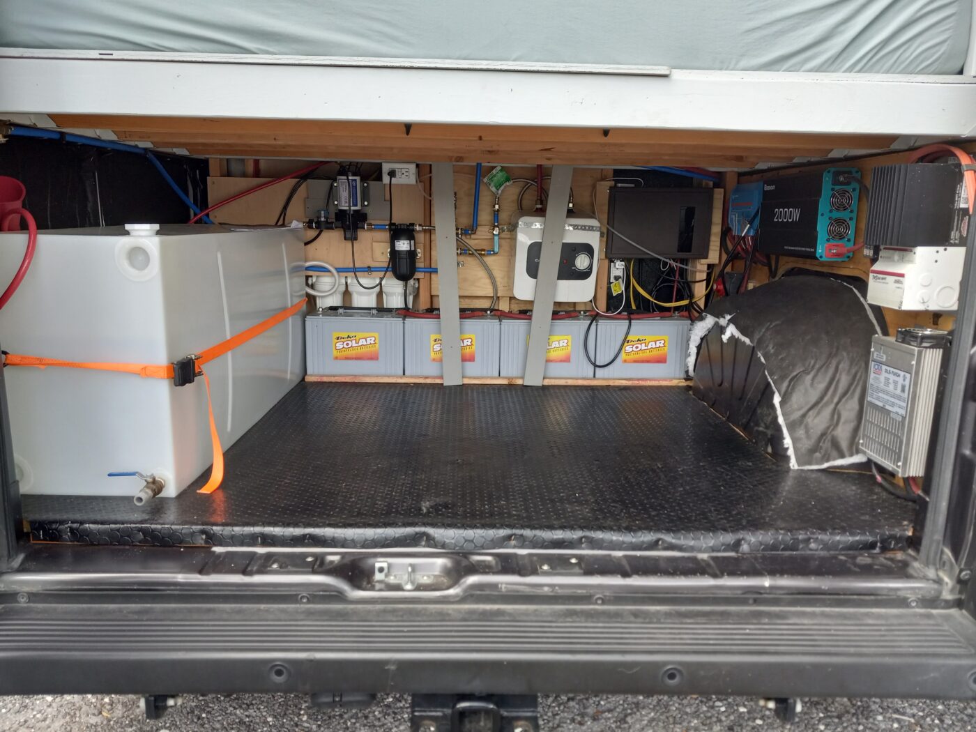 – The bed platform is entirely removable for easy access to work on plumbing and electrical or to maximize storage space if you want to haul more gear.