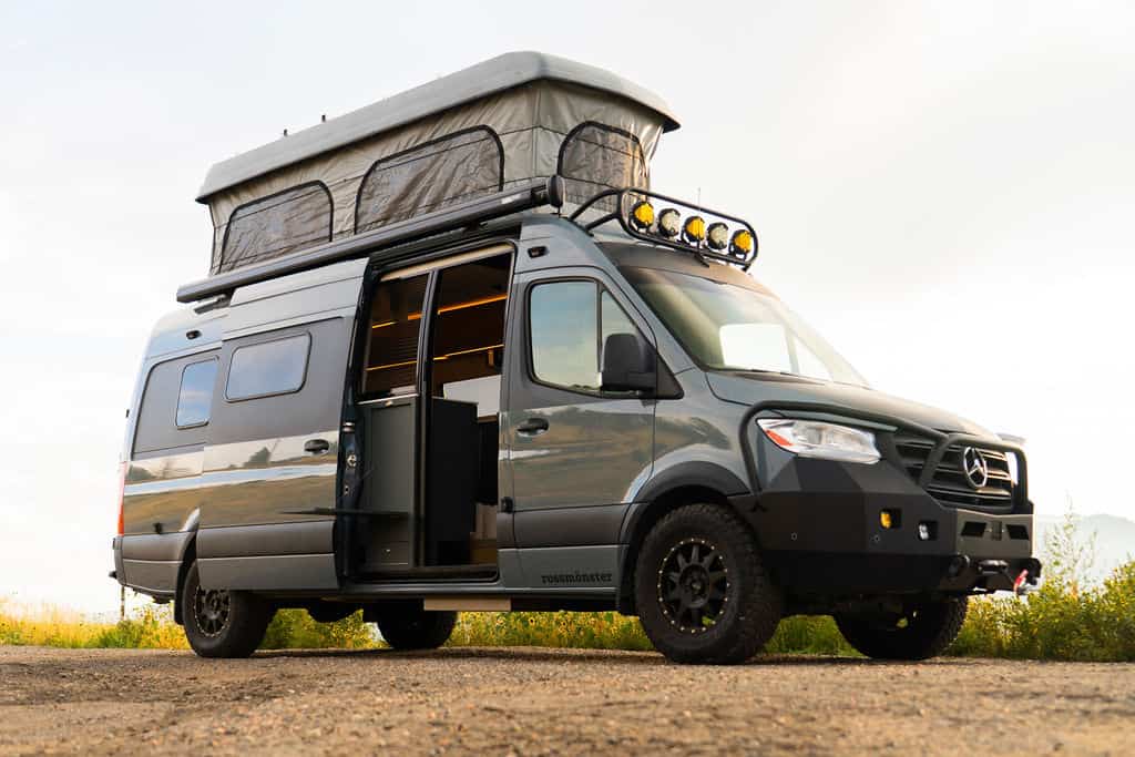 If you’re tall, this van will be especially appealing with a ceiling height of 6’6″. And with the pop-top up, it feels cavernous (10-foot ceilings with it raised)!