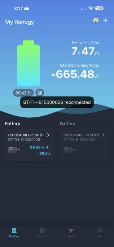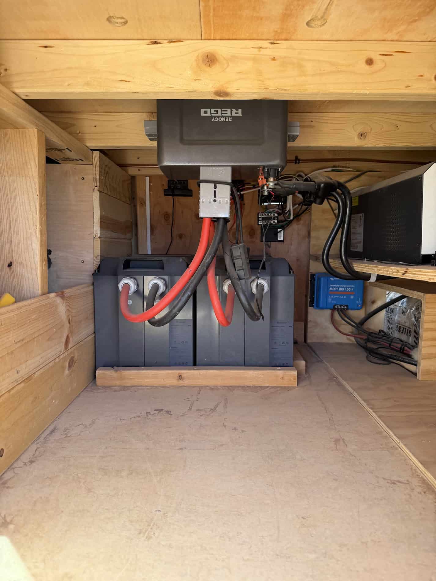 The electrical system is all Renogy, other than the charge controller. which is a 100 | 50 Victron charge controller. There is a bluetooth app for Renogy to monitor battery charge/discharge and levels.