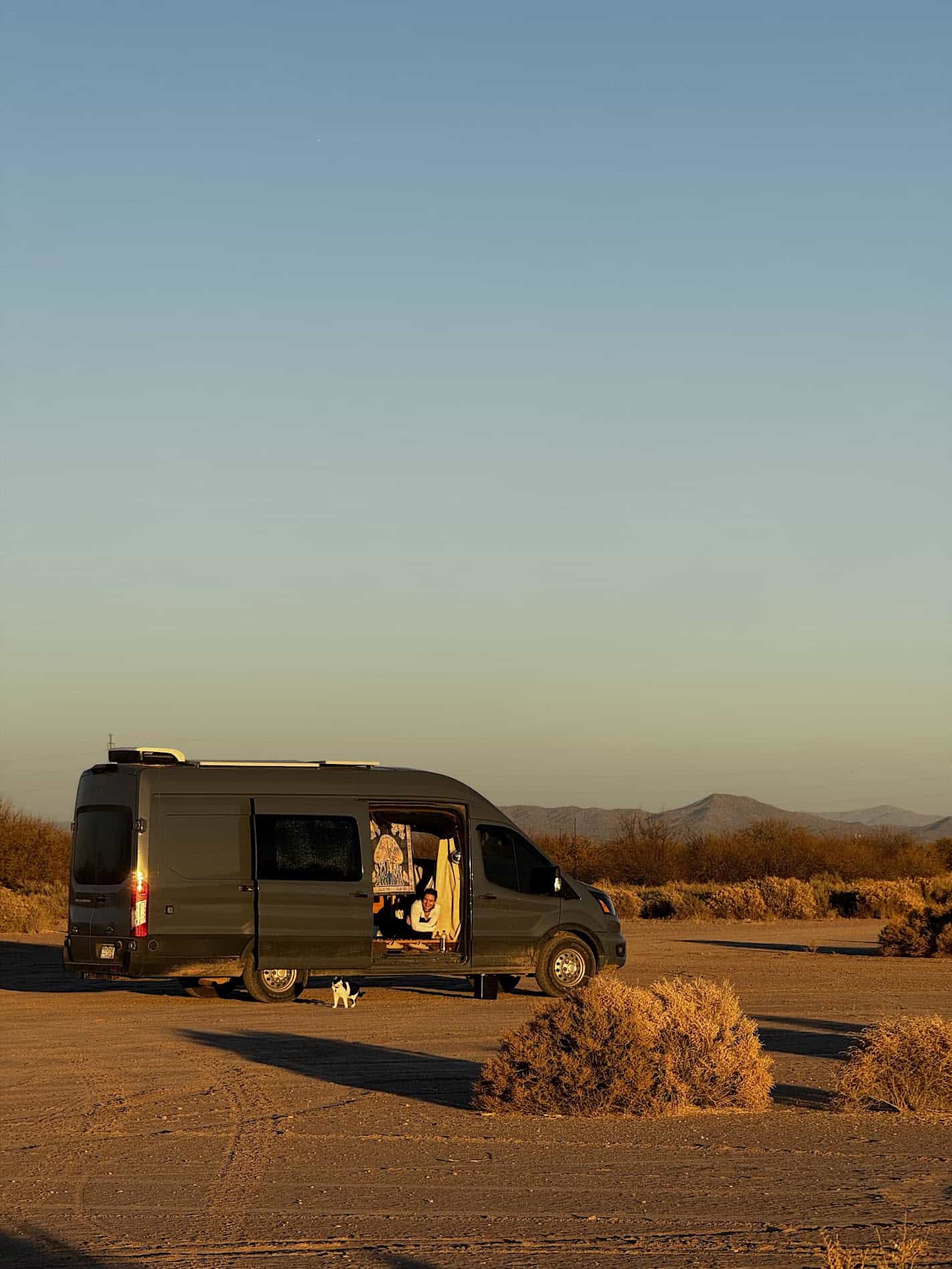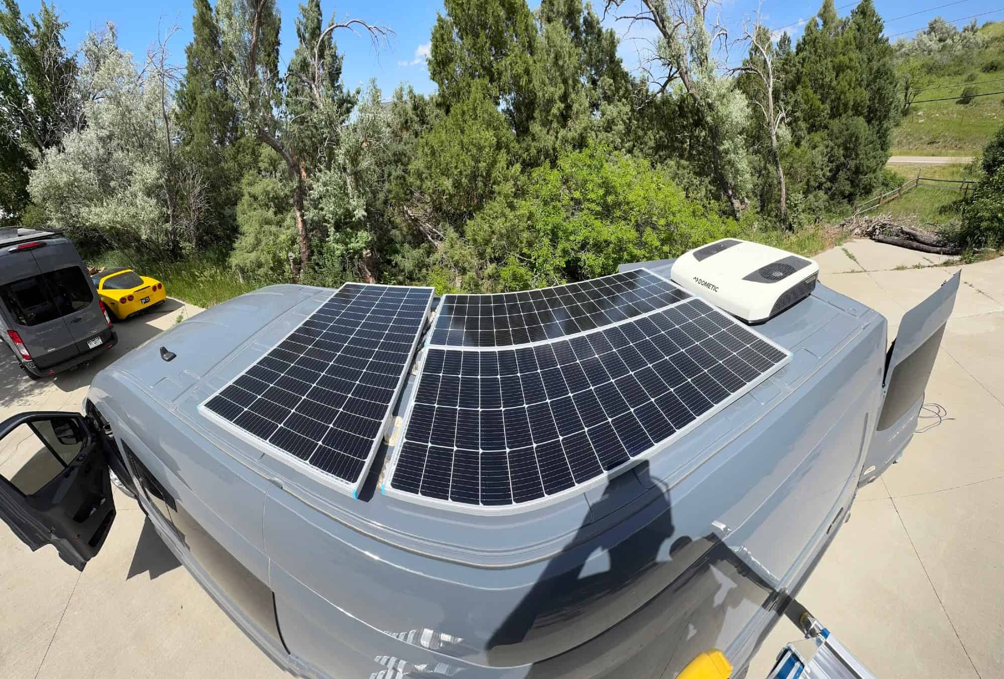 With the RTX Dometic 2000 Air Conditioner and a ridiculous 800Ah of lithium battery, you'll never be hot, and running out of power would be very challenging to do. I spent the summer skydiving in Moab and running the AC for maybe 5-7 hours a day while my dog remained in the vehicle with the Air Conditioner on, along with Starlink 24/7 and the battery rarely dipped outside of the night-time hours while Starlink ran and I charged all my devices and there was no sun to provide charging 🙂 The next evening at Sunset it would be back full etc.