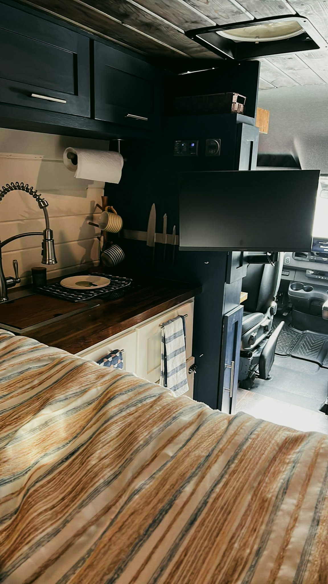 144″ 2022 Sprinter Van Conversion w/ Remote Work Desk Area, Solar, AC, Hot/Cold Water and more!
