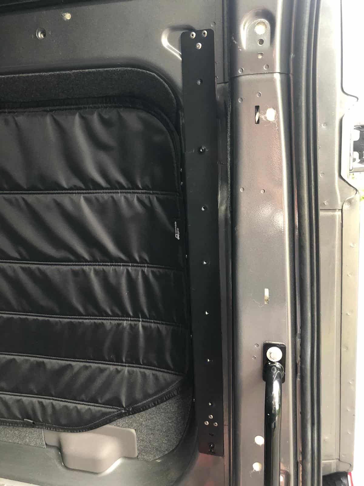 Bed Brackets from Flatline Van Co. (brackets are secured to wall frames, provides for mounting a variety of bed systems including from Flatline Van Co., Van Wife Components, Adventure Wagon, or custom shelves, or additional L-Tracks)