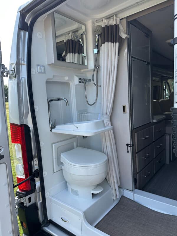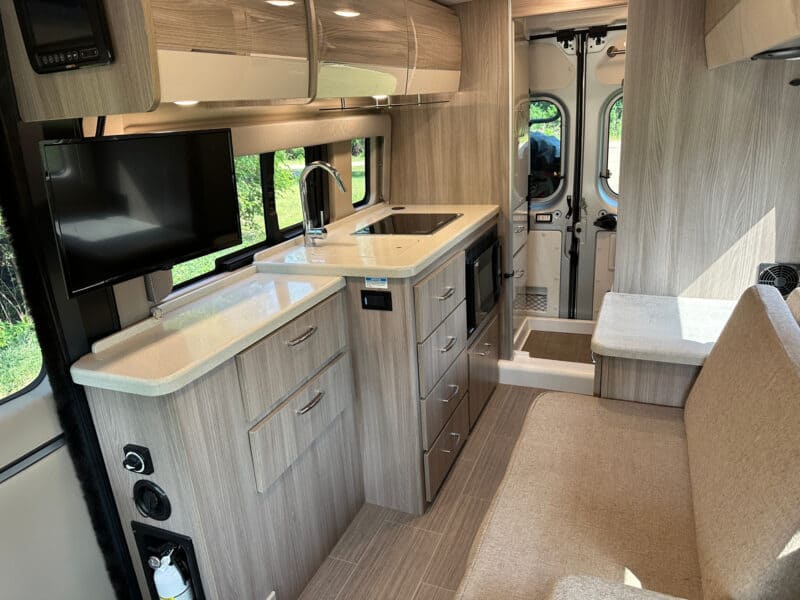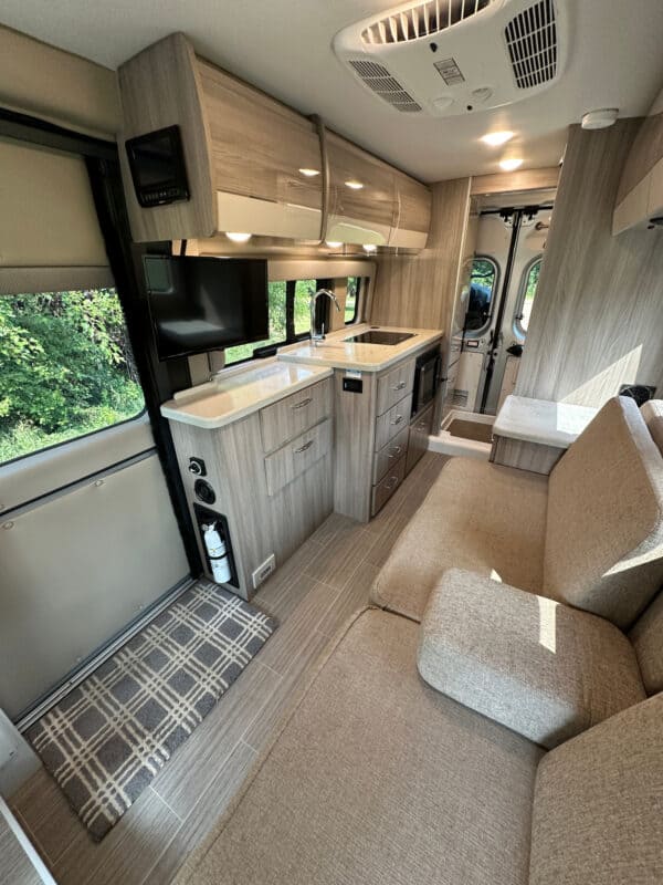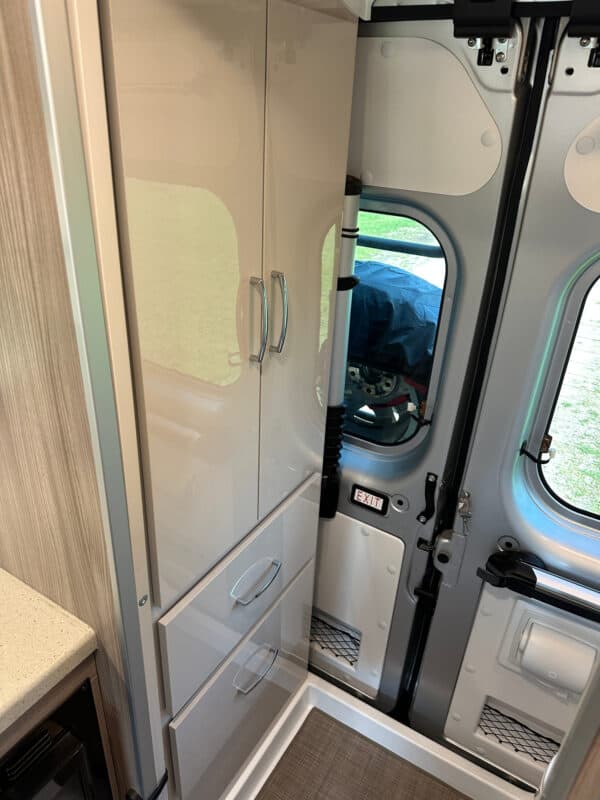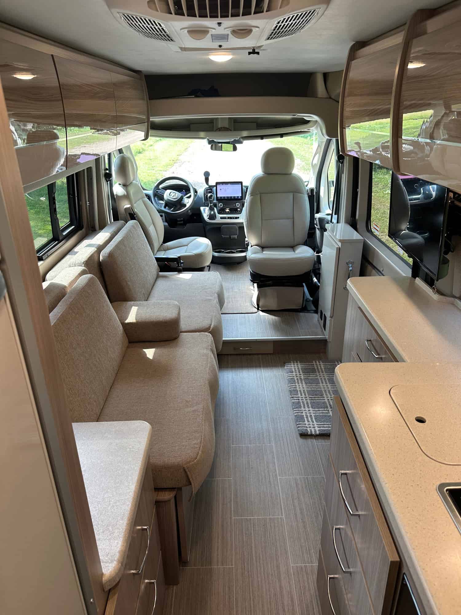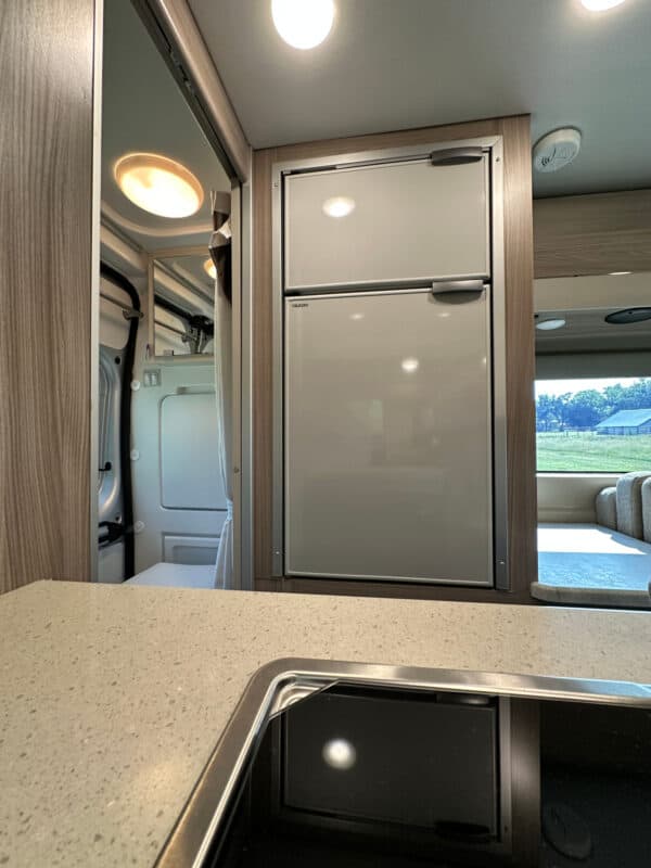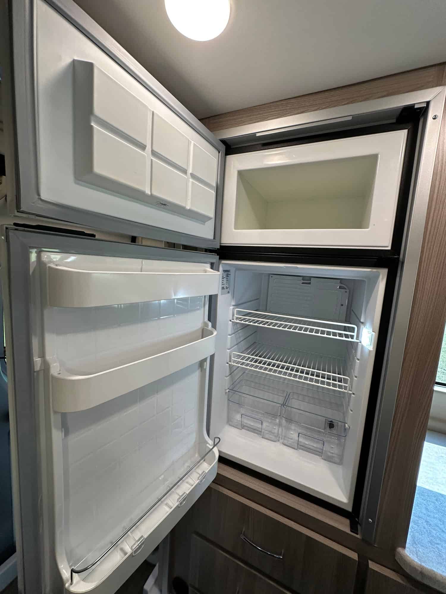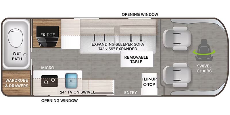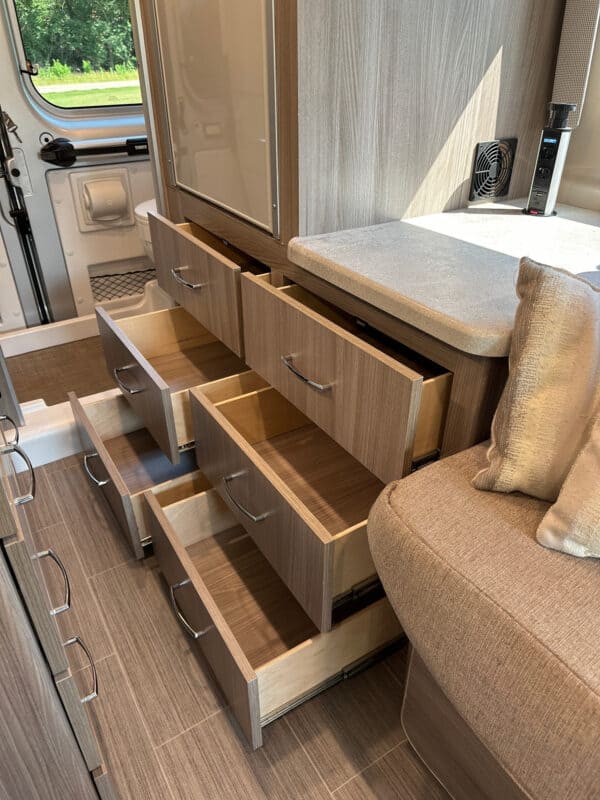 We have loved the wide-open floorplan of the 20k, thanks to the rear wet bath and generous windows. The 20k also has the large, eye-level refrigerator and separate freezer above for the most food storage available, as well as a bunch of drawers, overhead cabinets, and wardrobe.