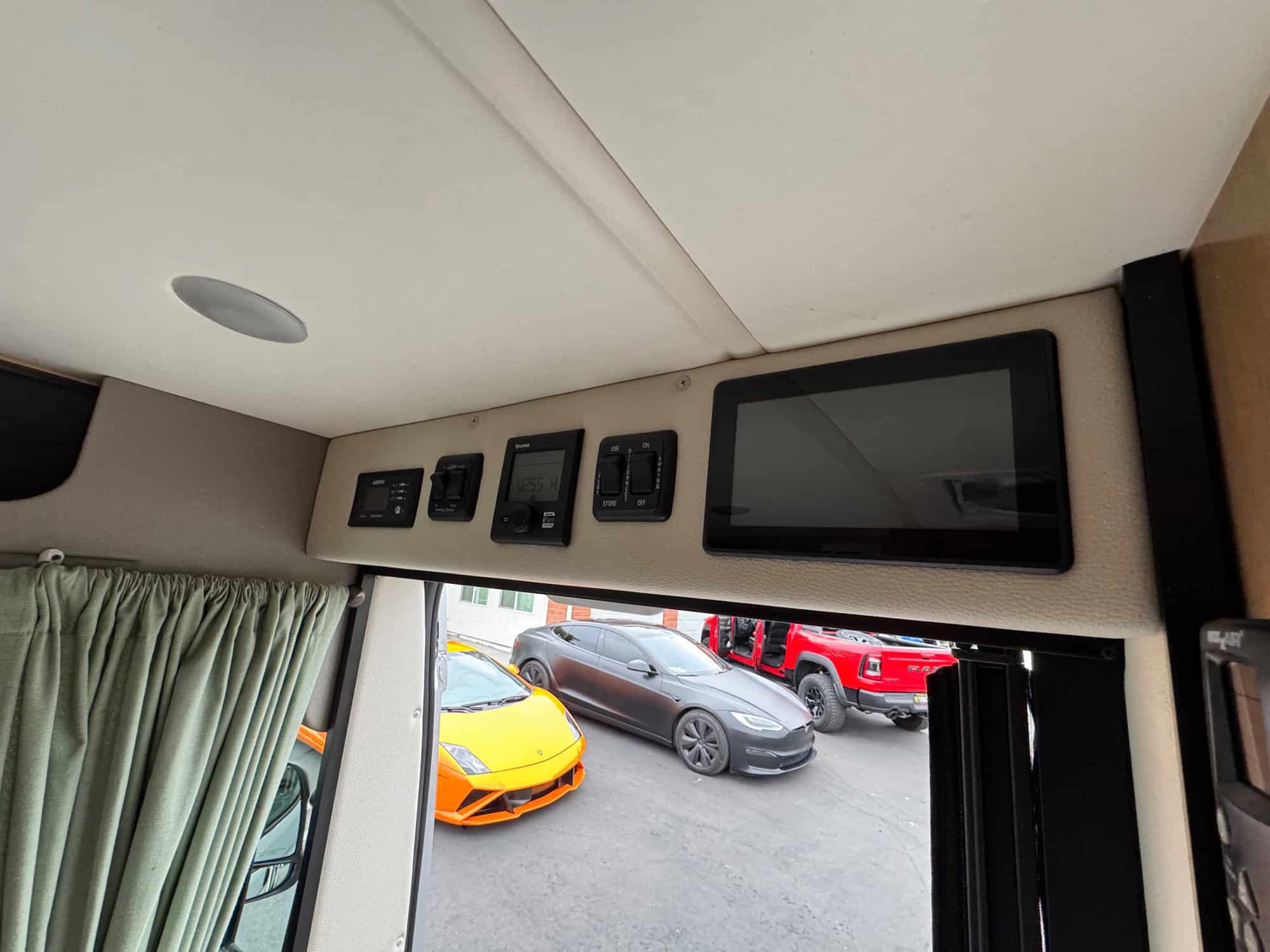 Premium touches like the Quiet Tech insulation, Truma Combi Eco heating system, and roof-mounted solar panels plus a generator makes it ideal for off-grid camping. We Added personal upgrades like a Front hitch, a Bike rack, Thule storage box mounted on rooftop plus a Yakima EXO tiered storage box and basket rack with lights. Custom storage cover included.