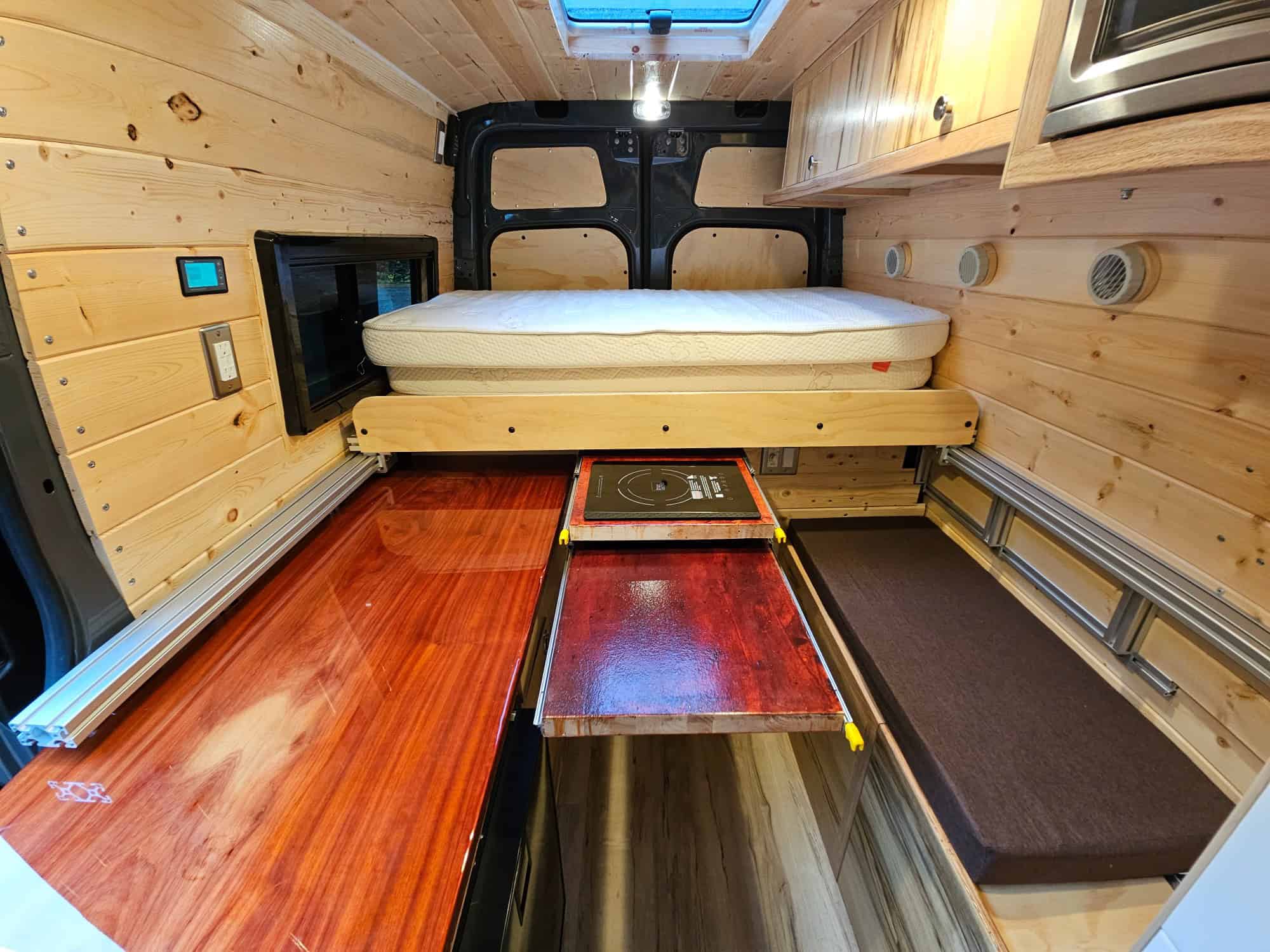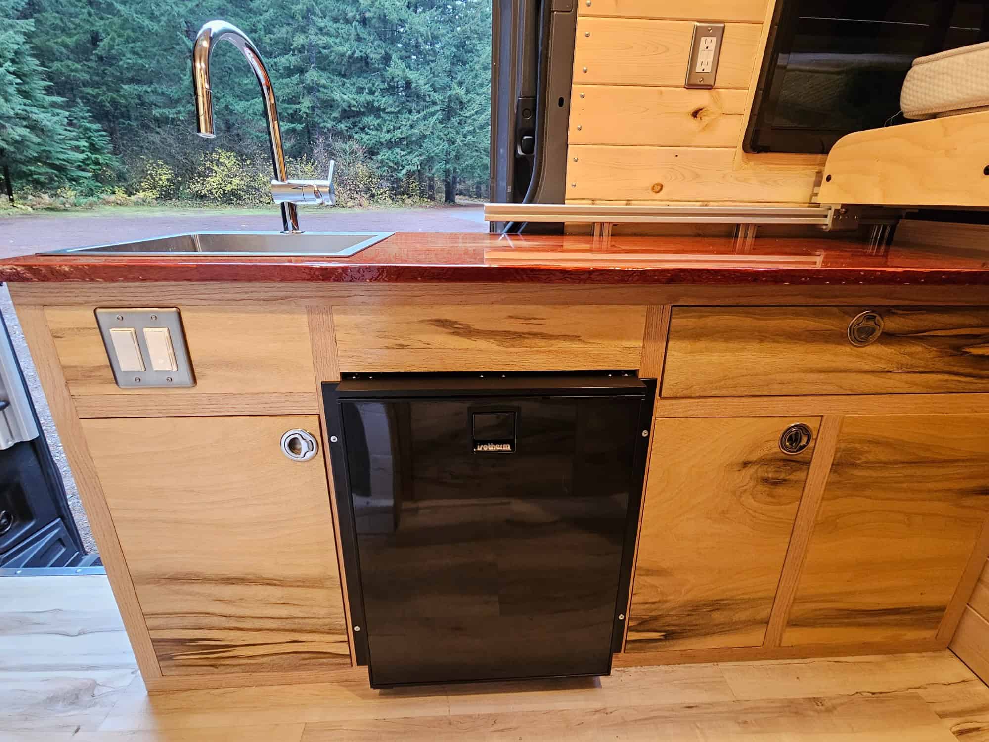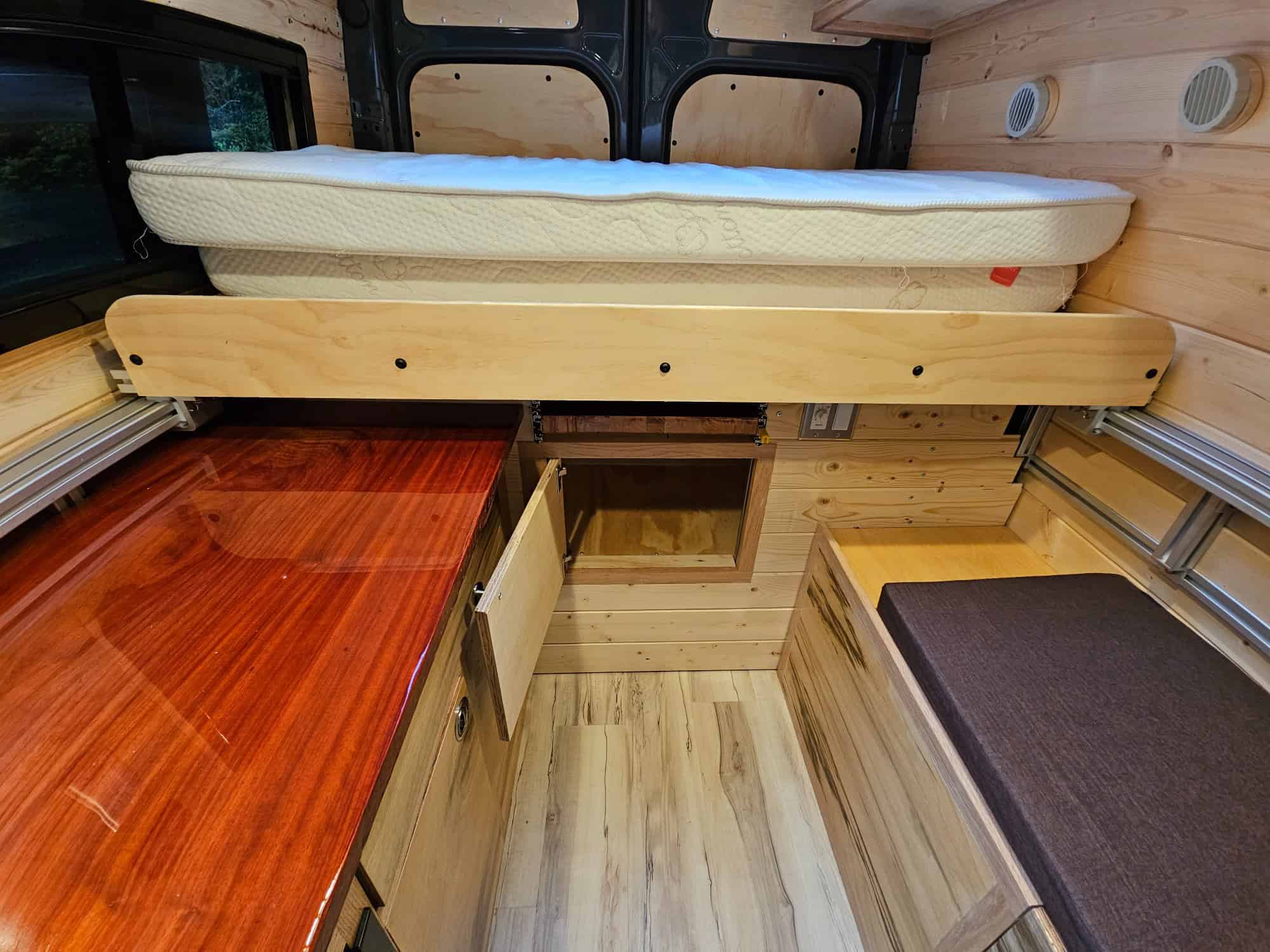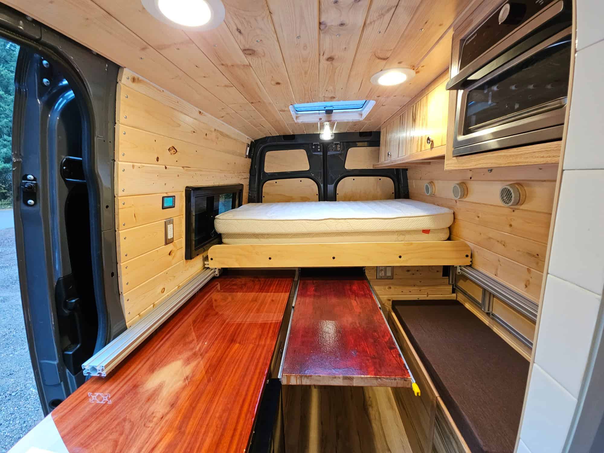 The van itself is a new 2024 144″ High Roof Mercedes Sprinter. 4-cyl Turbo-Diesel RWD Drive with 2500 miles . The vehicle comes with a 7 year/ 100,000 Mile factory extended warranty. The asking cost of this conversion is 149,995