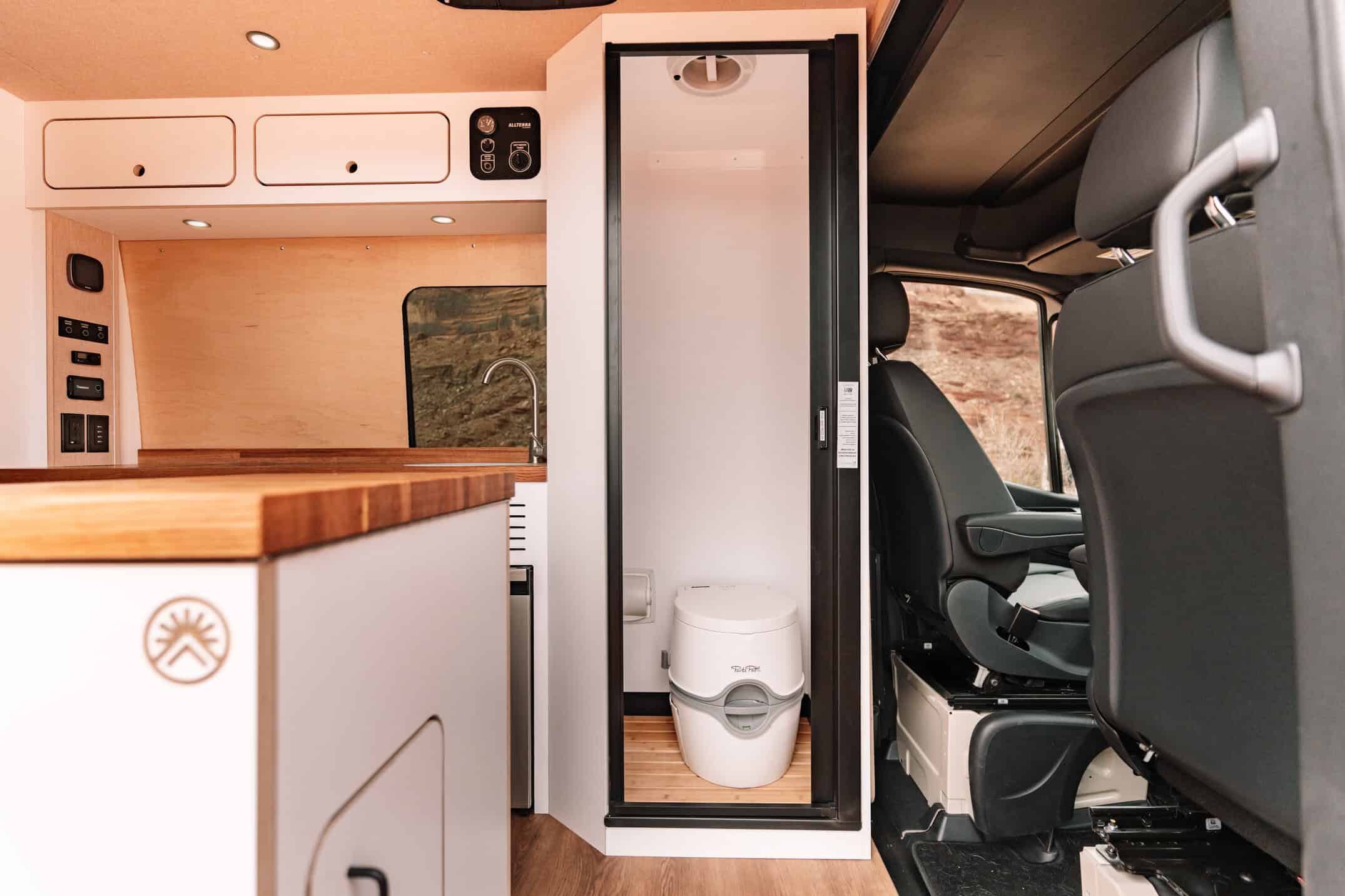 Interior wet bath, toilet, & hot water shower